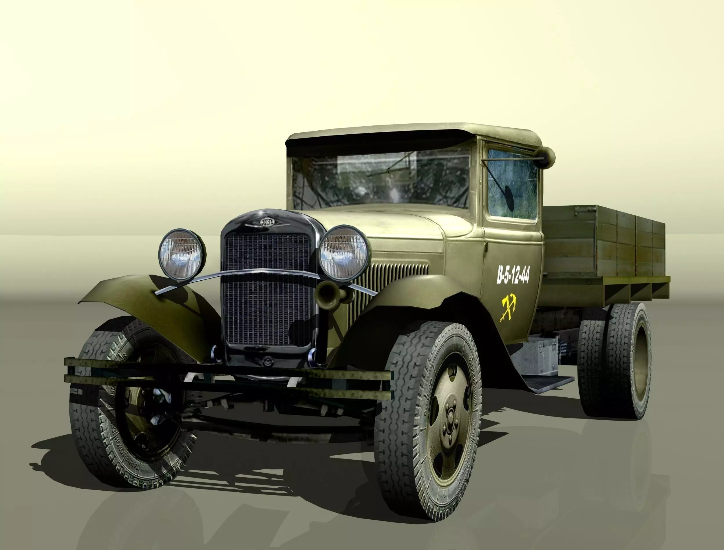 GAZ-AA (lorry), chassis, onboard Soviet retro auto, 3d-model. Low polygon, static model 3ds_max (Total size: 5436-faces, 1600-poly, 2466-vertex). The source material for creating scenes, content or additions to game play or simulators. Description prototype: GAZ-AA lorry, chassis, onboard. Manufacturer: GAS The years of the production: 1932-1950 The main manufacturer: USSR, Gorky Avtozavod. Assembly: the USSR, KIM (Moscow, USSR) Grade: 1.5 tons Capacity: 1500 kg Design Platform: AA 1929 Layout : engine in front, rear-wheel drive Wheel formula-4x2 Engines: GAZ (gorky) Transmission - 4-step mechanic.