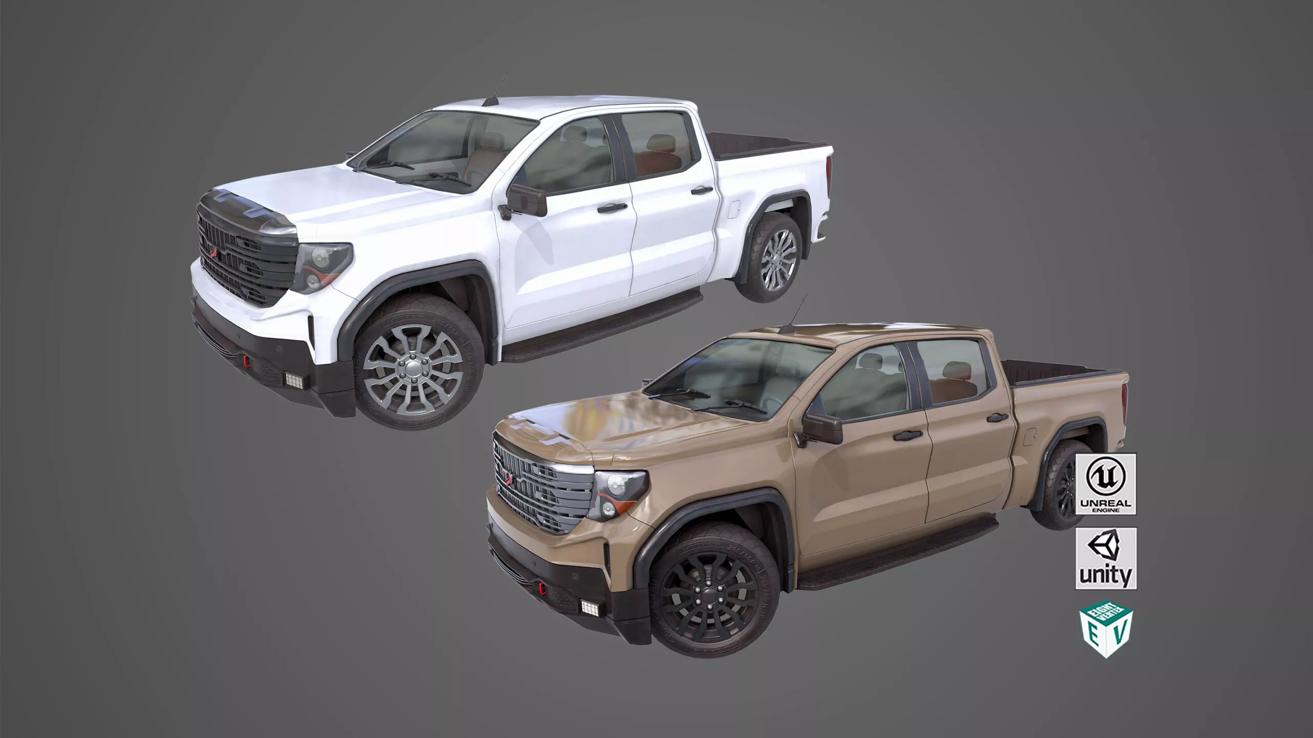 MaterialsThe Model has 2 material PickupTruck02_Exterior_Mat, PickupTruck02_Interior_Mat.Each has its own set of texture maps.Texture Maps and ResolutionsAll Metallic and Specular Maps(Supports for 3D Softwares and Renderers)
