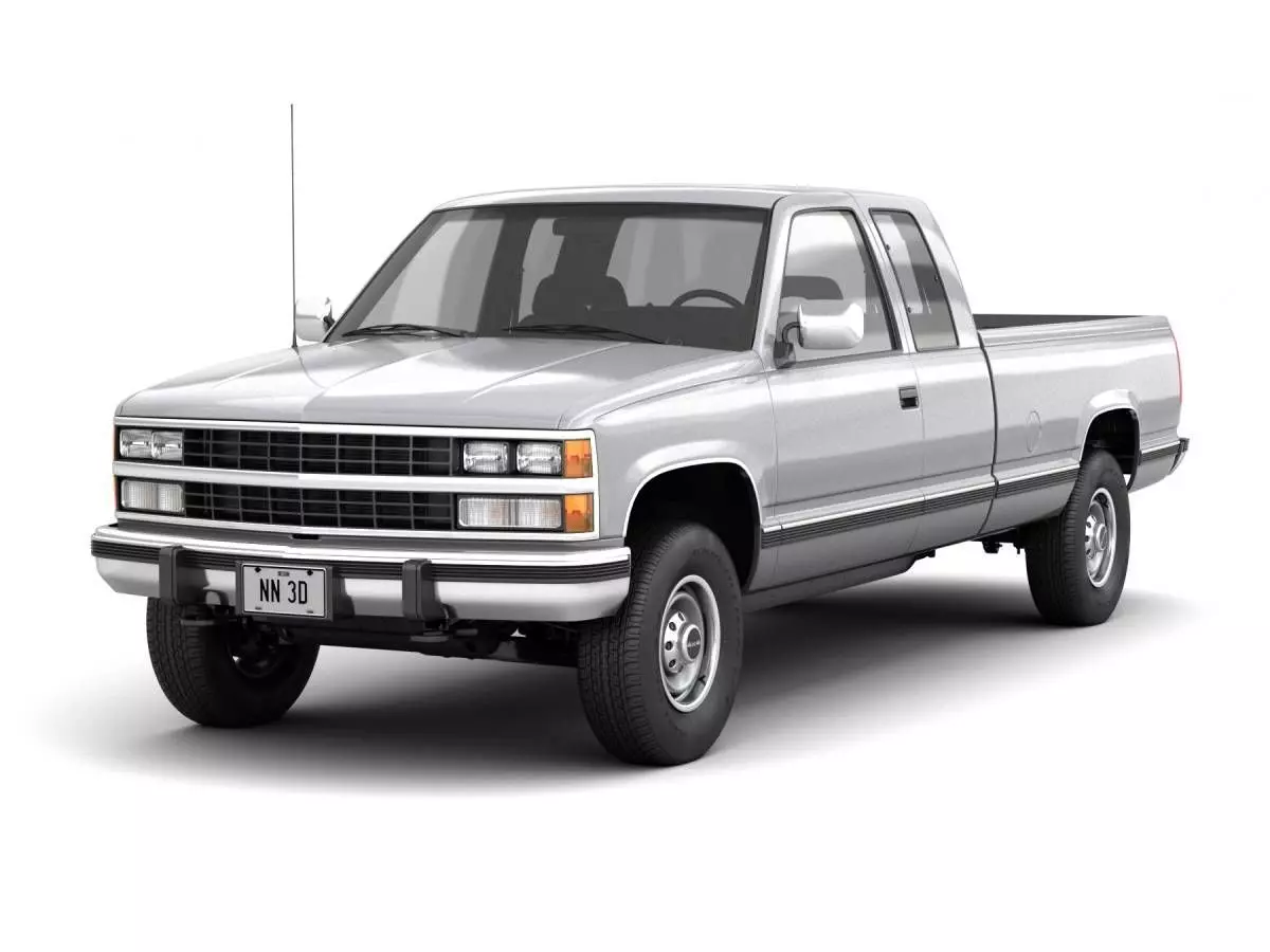 3D model of a modern extended cab heavy duty pickup truck.