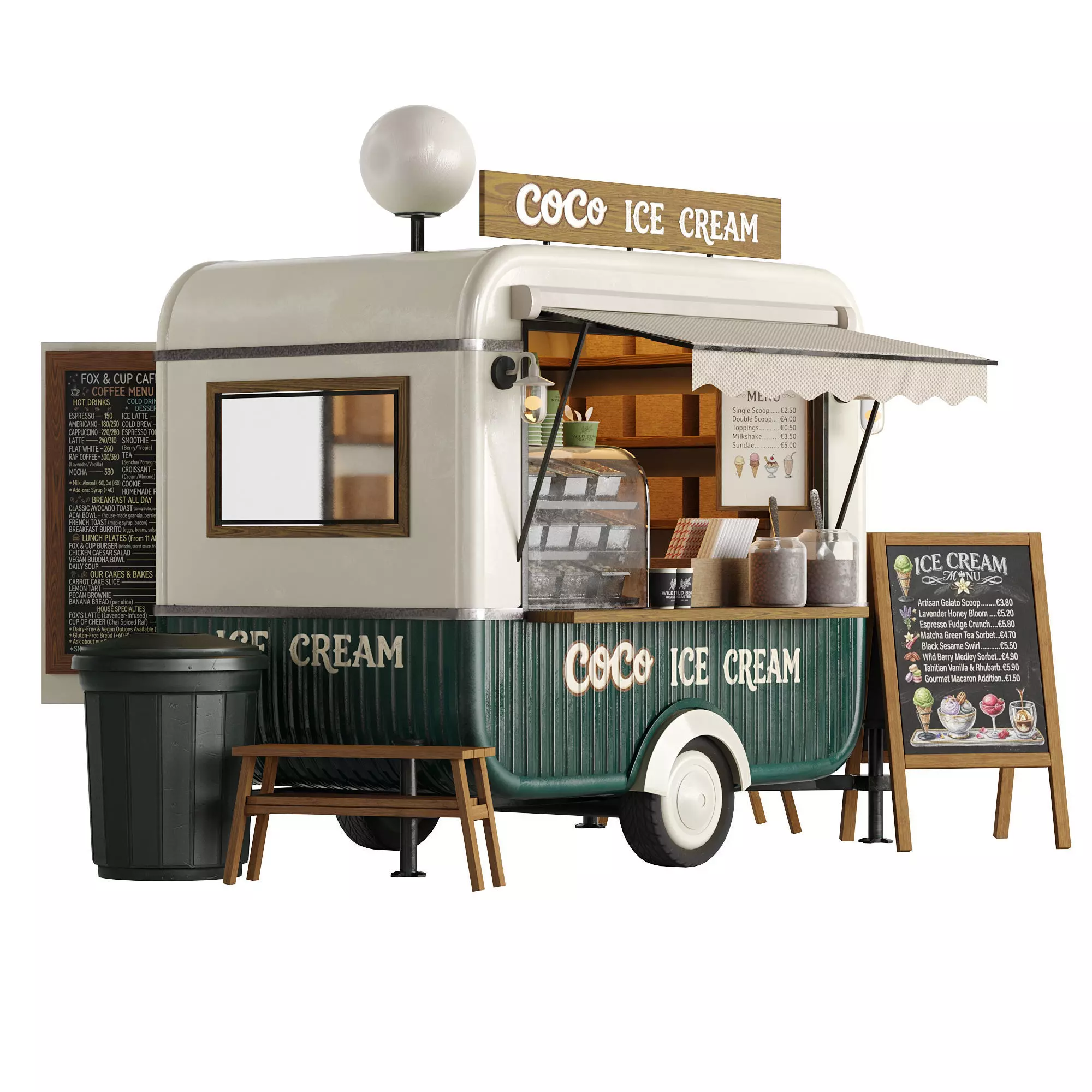 Realistic Ice Cream Food Cart Kiosk – Street Dessert Stand