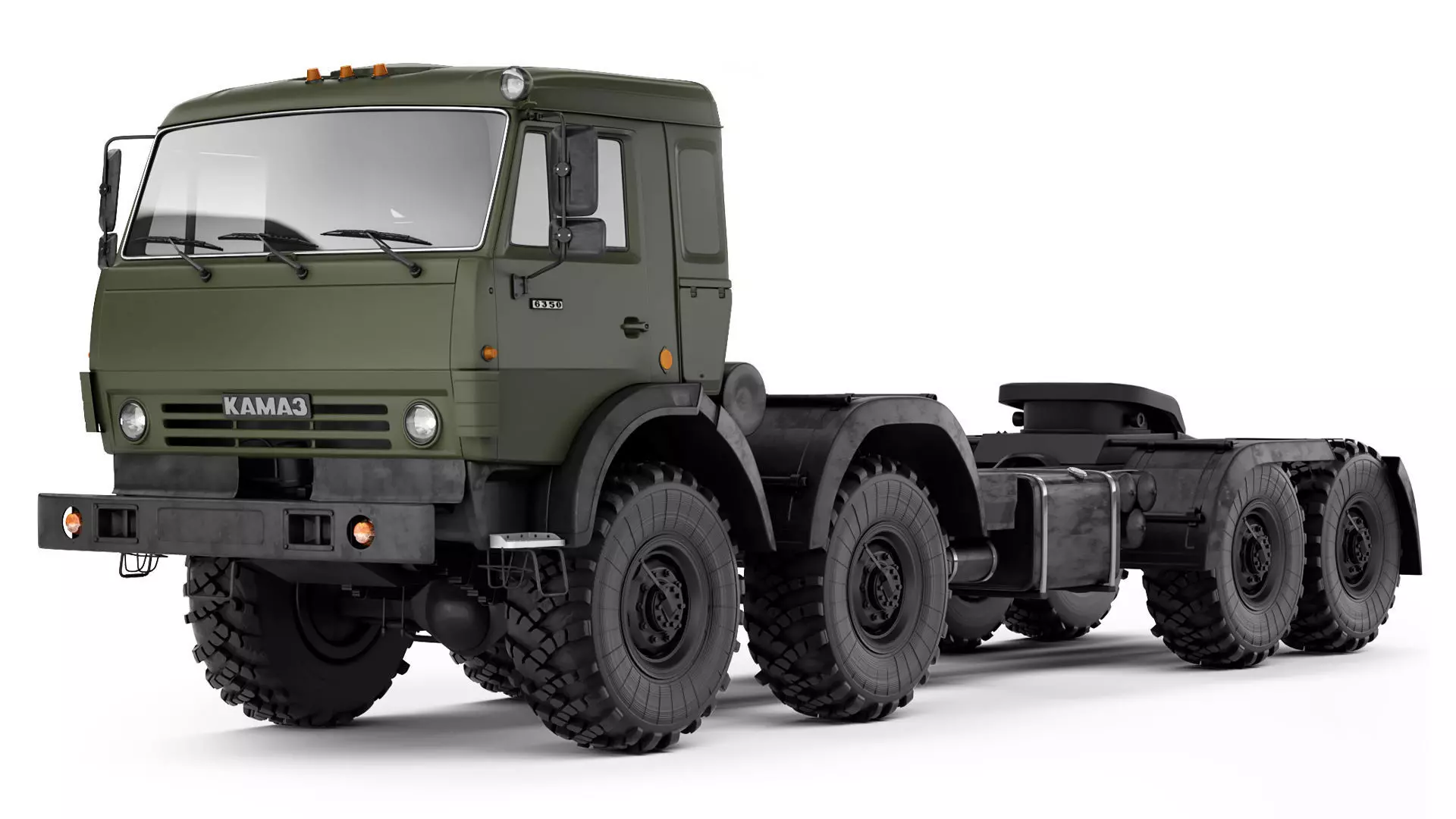 KAMAZ-6350 - a tractor capable of towing semi-trailers. Unified army all-wheel drive multi-purpose vehicle of the Mustang family. The main elements are prepared for TurboSmooth smoothing (2 Iteration). The body elements and wheels are worked out. The interior is conditional.