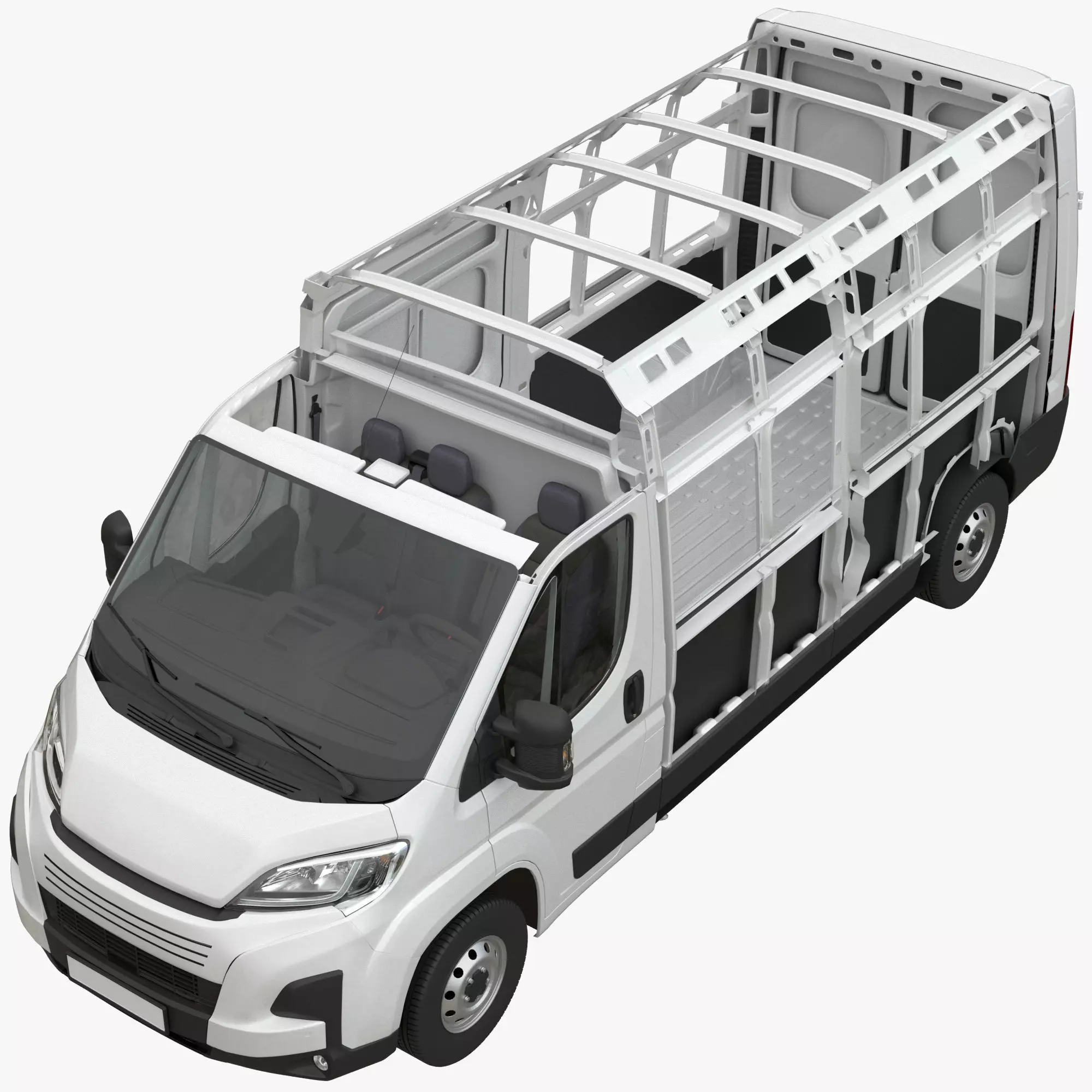 L3H2. A detailed model of a Global commercial van. Light commercial vehicle (LCV).The model has no logos or brand name plates. In terms of size and content, this model corresponds to such vans as (since 2014+): FIAT Ducato, Peugeot Boxer, Citroen Jamper, RAM ProMaster, Opel Movano, Vauxhall Movano, Toyota Proace Max.