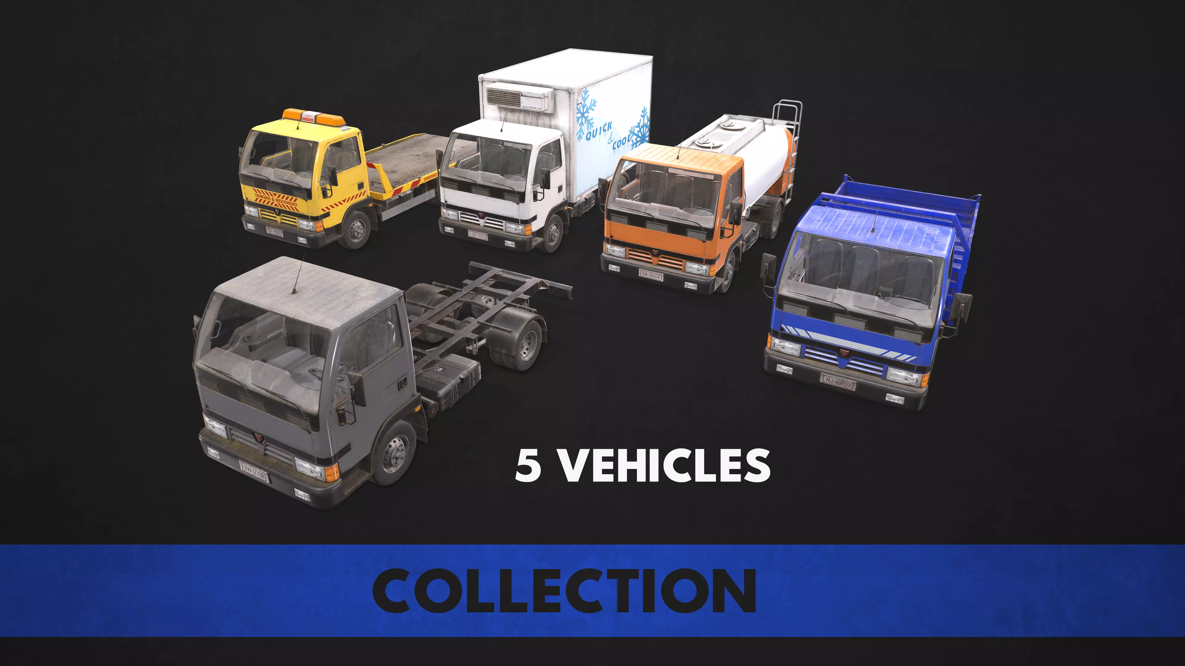 Light Truck Pack including 5 low poly models with PBR textures: