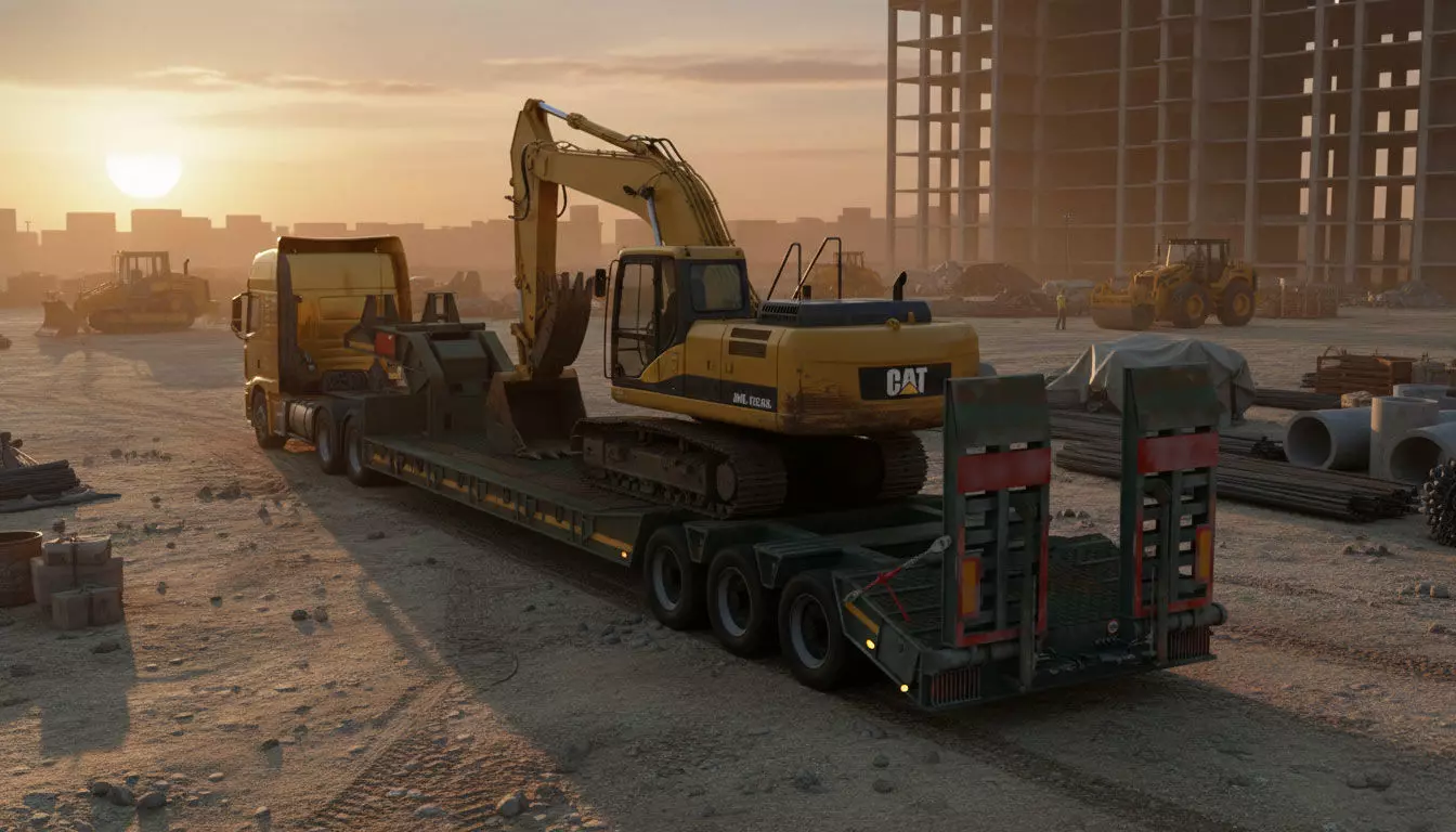Lowboy Heavy Equipment Trailer – Game Ready 3D Model
