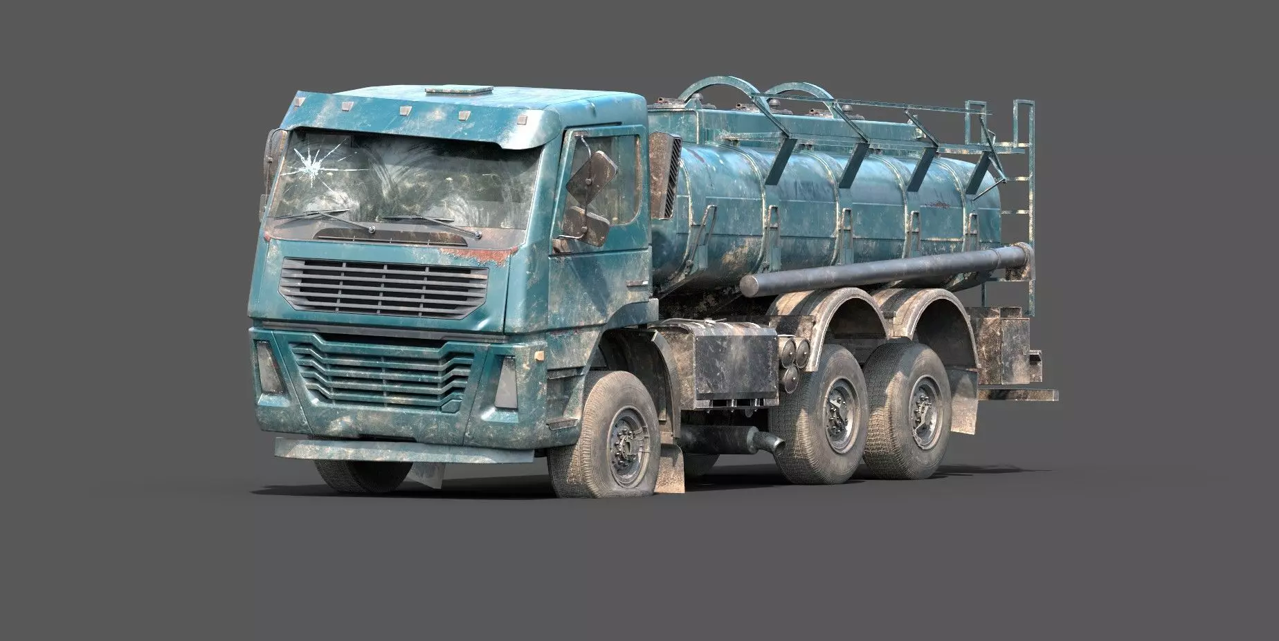 The model has 3 layouts:Truck maps with a resolution of 4096x4096 and a texel density of 400px/m with Basecolor(Five Variations), Metallic, Roughness, Normals and AOCistern maps with a resolution of 2048x2048 and a texel density of 375px/m with Basecolor(Five Variations), Metallic,Roughness, Normals and AOGlass maps with a resolutionof 1024x1024 and a texel density of 350px/m with Basecolor, Roughness, metallic, opacity and Normals