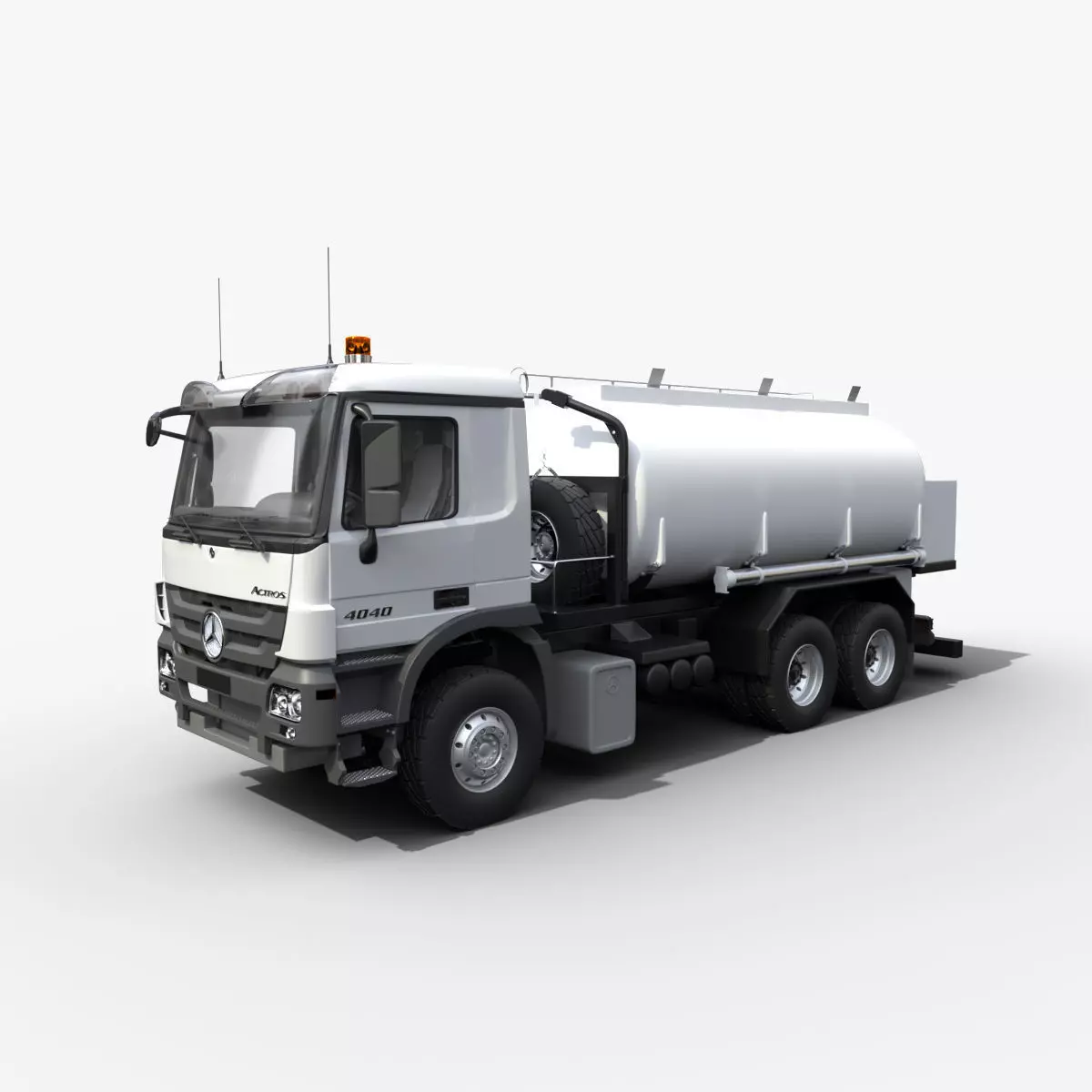 Mercedes ACTROS 4040-A 6x6 Fuel tank High Exterior detailed 3D model,The model is suitable for Ultra HD rendering and further use in broadcast,high-res film close-up, advertising, etc. The model can be also used in real-time applications after a number of mesh optimizations.Photo real model that will enhance detail and realism to any of your rendering projects. The some object models have textured, detailed design that allows for close-up renders, and was originally modeled in Maya 2020 and rendered with Arnold. Renders have no postprocessing.