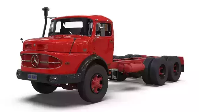 This 3D model represents the chassis cab version of the Mercedes-Benz 2624 truck, featuring an empty rear frame configuration designed for maximum customization. This base truck model serves as a versatile starting point for creating various specialized vehicles including dump trucks, flatbeds, utility vehicles, or service trucks.