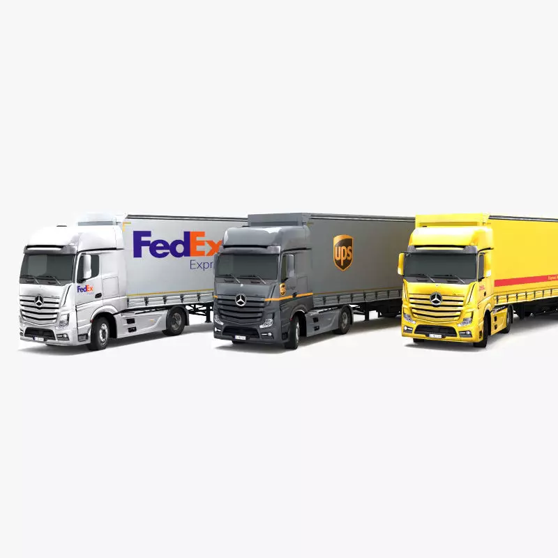 Mercedes Benz Actros DHL UPS FedEx Low-poly 3D model