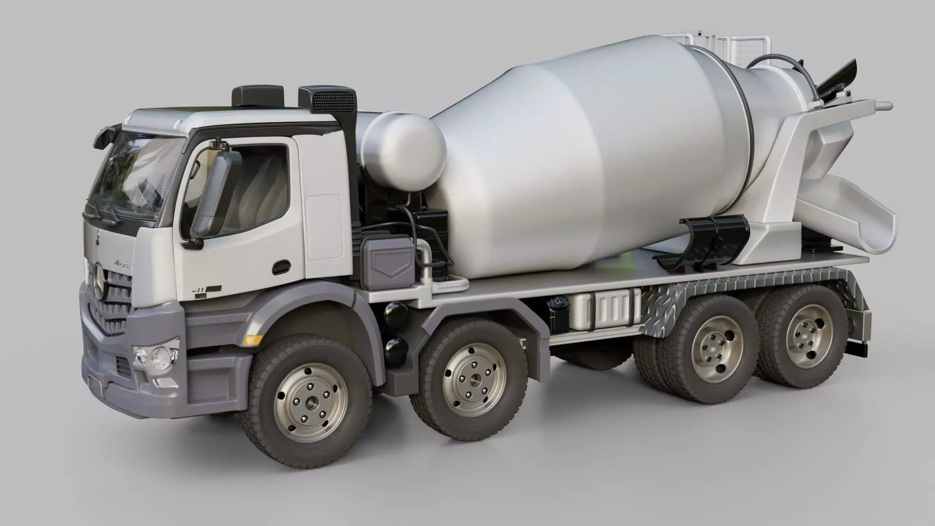 3D model of the Mercedes-Benz Concrete Mixer Truck. Created in Blender and rigged.The mesh of the model in the Blender file format is mainly quads.