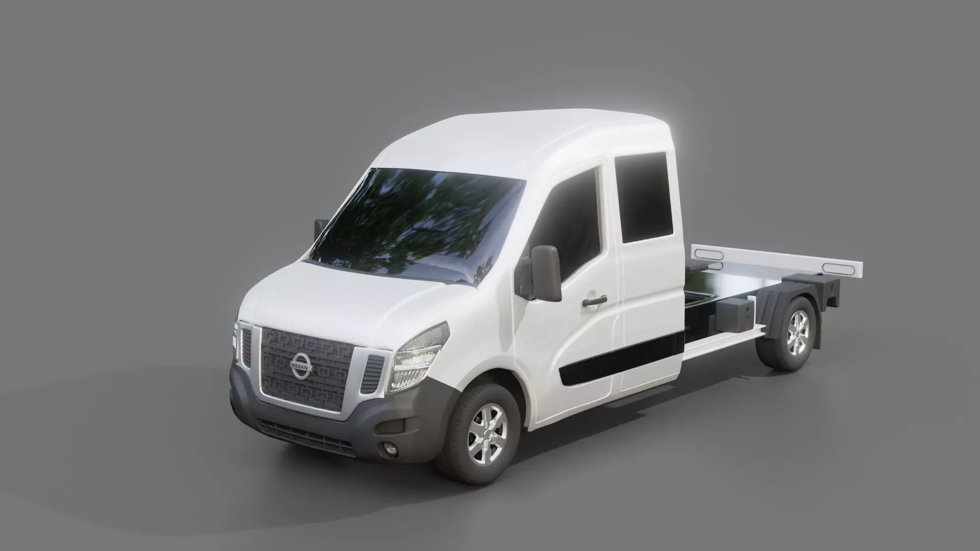 3D model of the Nissan NV400 CrewCab ChassisCreated in Blender and already rigged.The mesh of the model in the Blender file format is mainly quads.