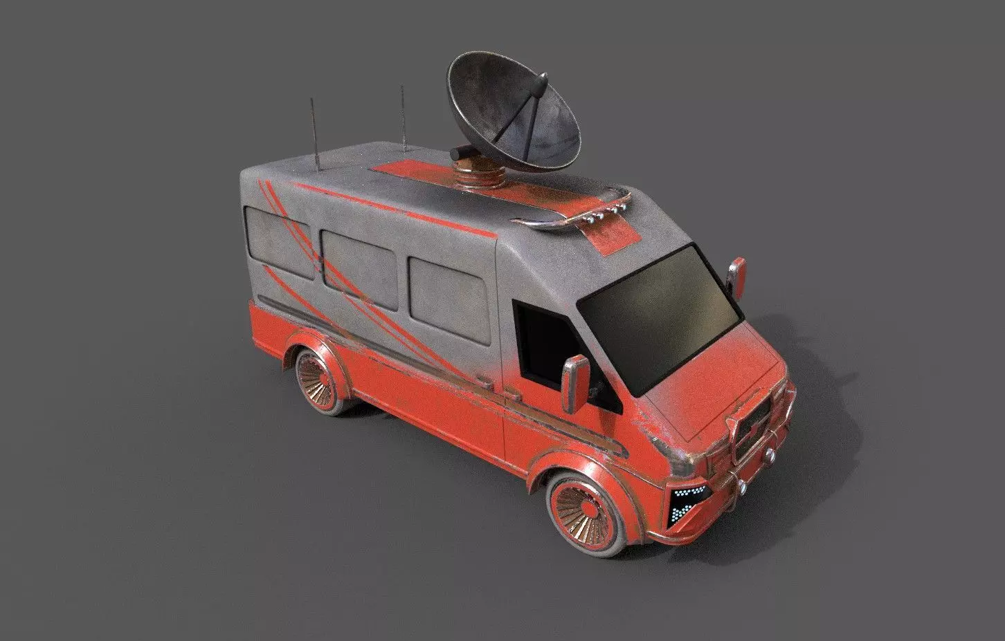 Old Broadcasting van Low-poly 3D model