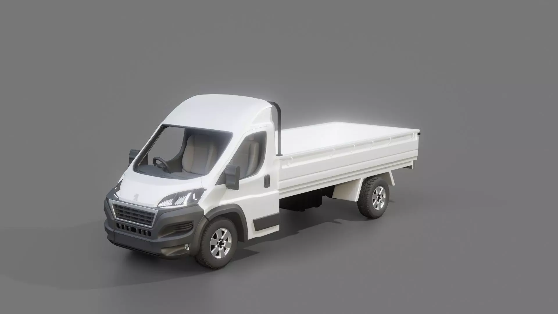 3D model of the Peugeot Boxer Flatbed TruckCreated in Blender and already rigged.The mesh of the model in the Blender file format is mainly quads.