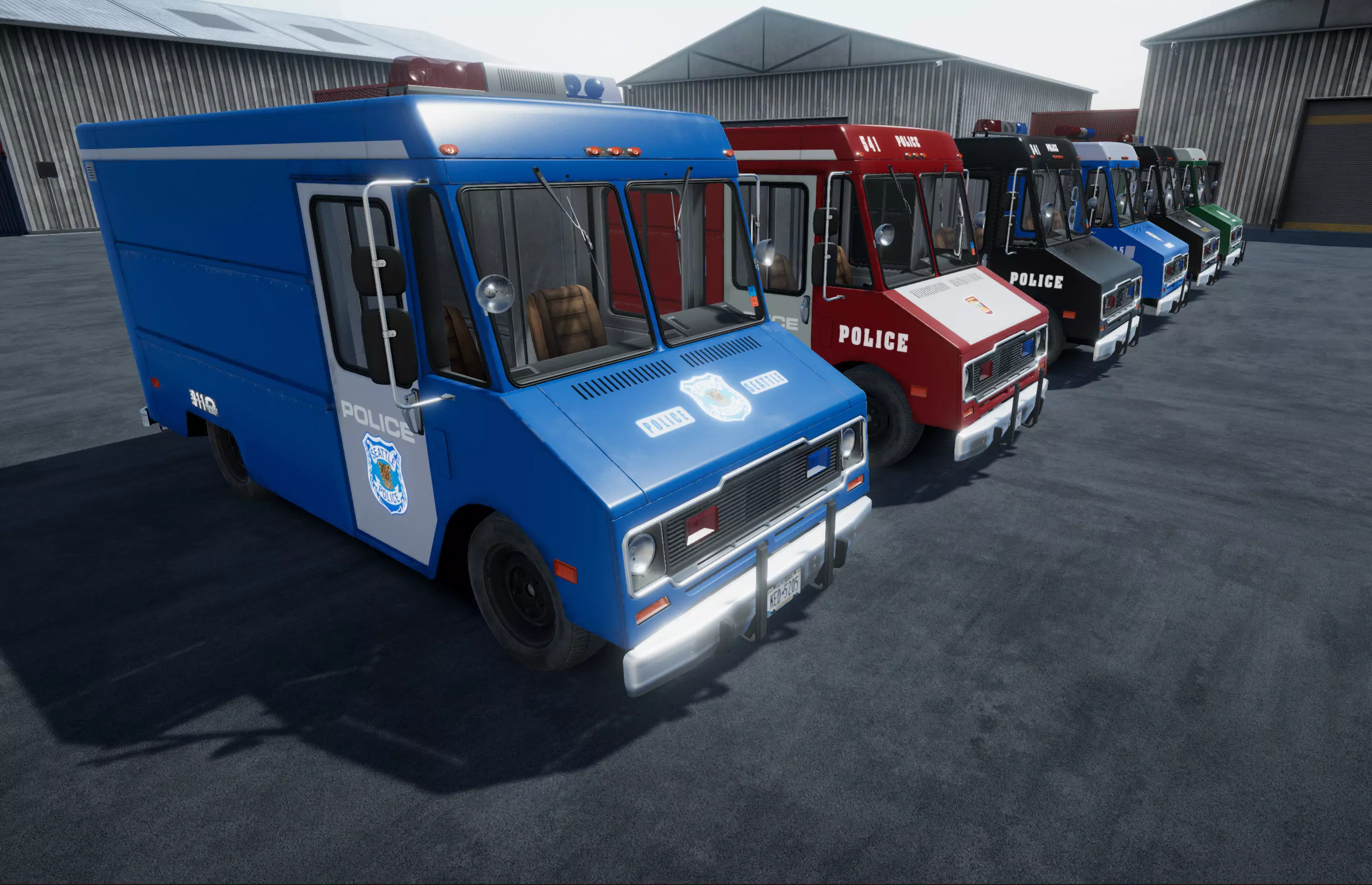 Police boxvan with industrial environment.