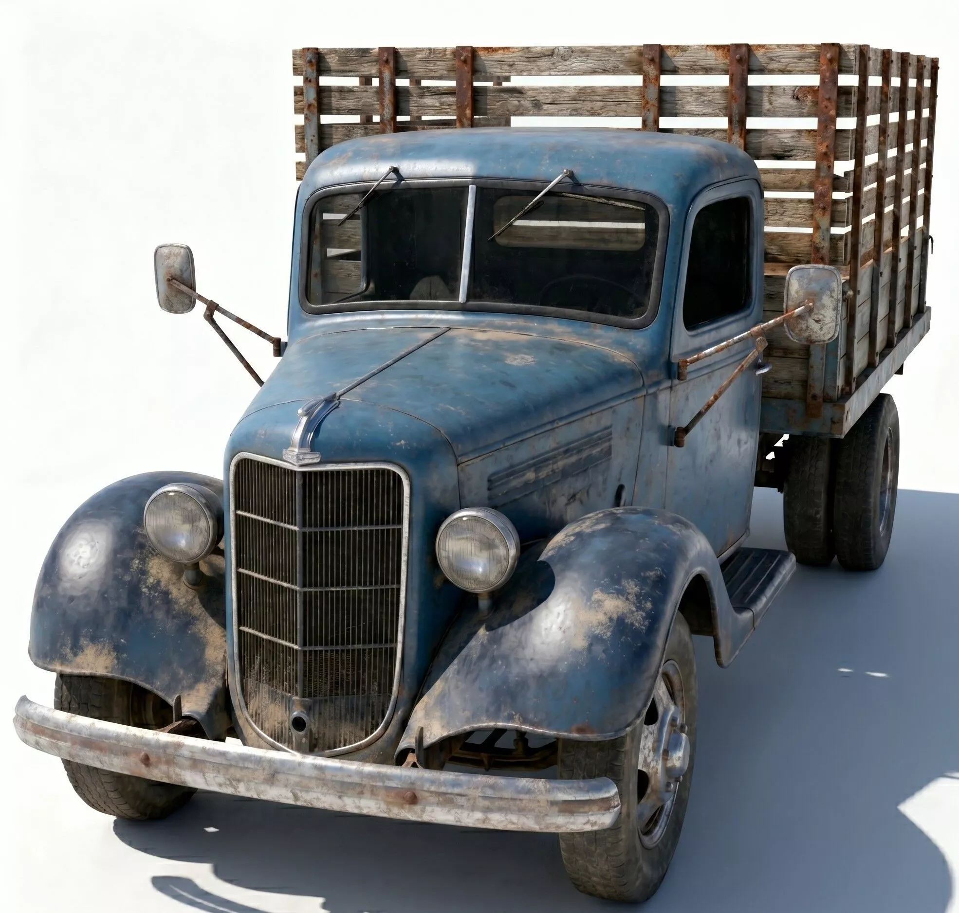 Asset BreakdownThe Overall ConceptThis asset is a high-fidelity, 3D-modeled realistic 1930s rural flatbed truck 3D model designed as a primary environmental vehicle for Great Depression-era farmsteads, cinematic dust-bowl sequences, or historical industrial visualizations. Focusing on a heavy-duty-patina aesthetic, this model features a classic rounded-cab silhouette integrated with a weathered wooden stake-bed and significant structural oxidation, making it an ideal choice for high-end character renders, rural-hauling quest objectives, or as a flagship historical piece in realistic 3D games.