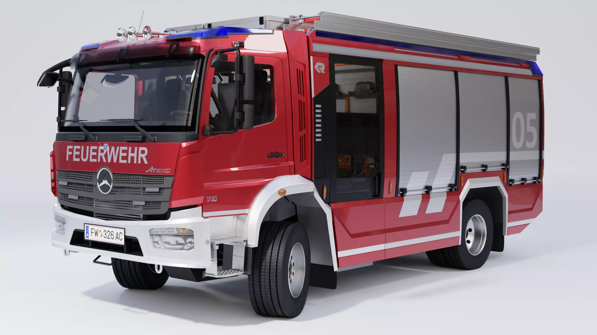 Extremely detailed, rigged model of a Rosenbauer Advanced Technology (AT3) 2020 Fire Truck. Original file created in Blender 2.93 LTS for Cycles and Eevee render engines.