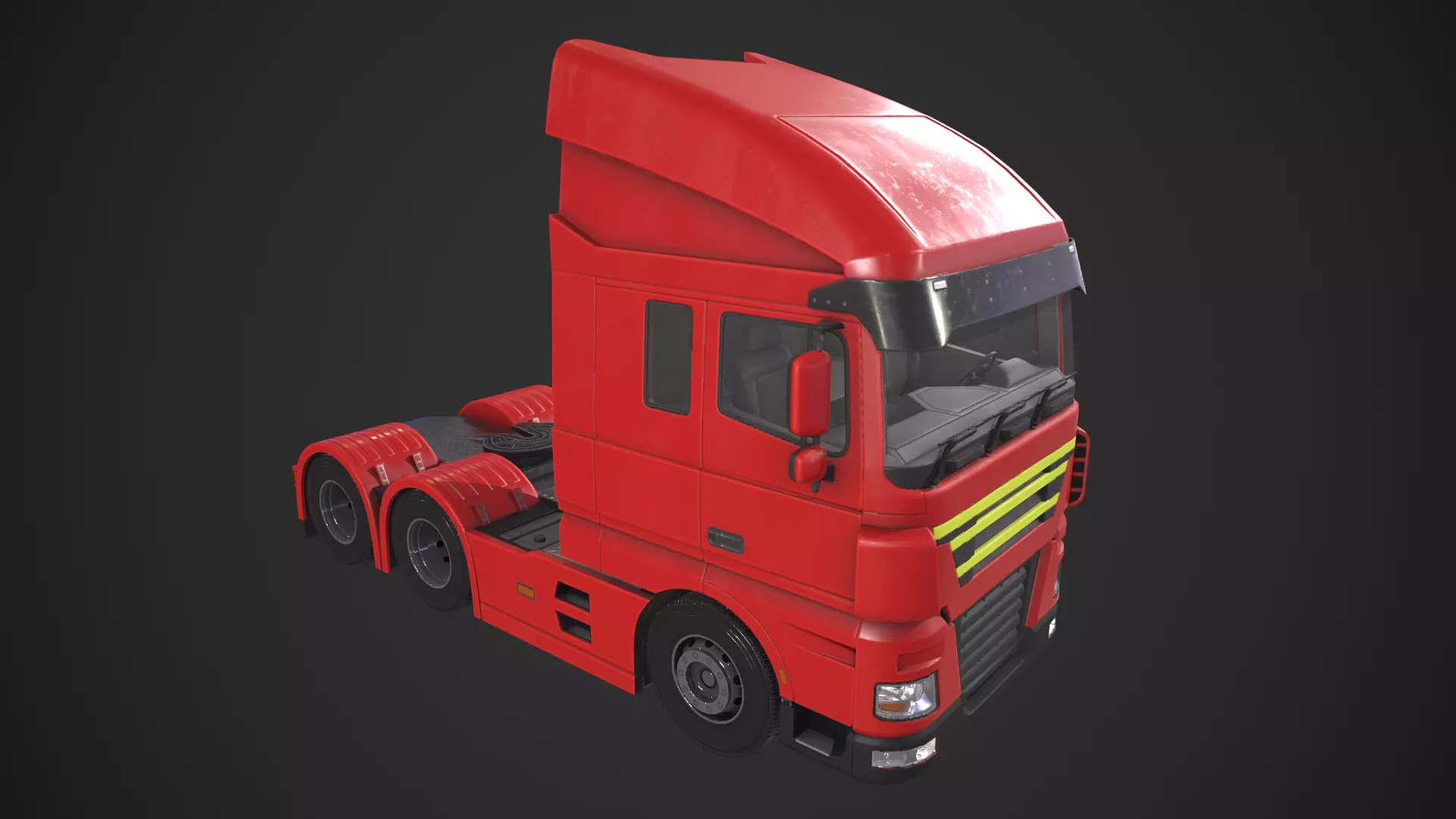 Game-ready Semi Truck asset, with PBR textures included in the files. This has 10650 polys (18996 tris) and 10050 vertices.
