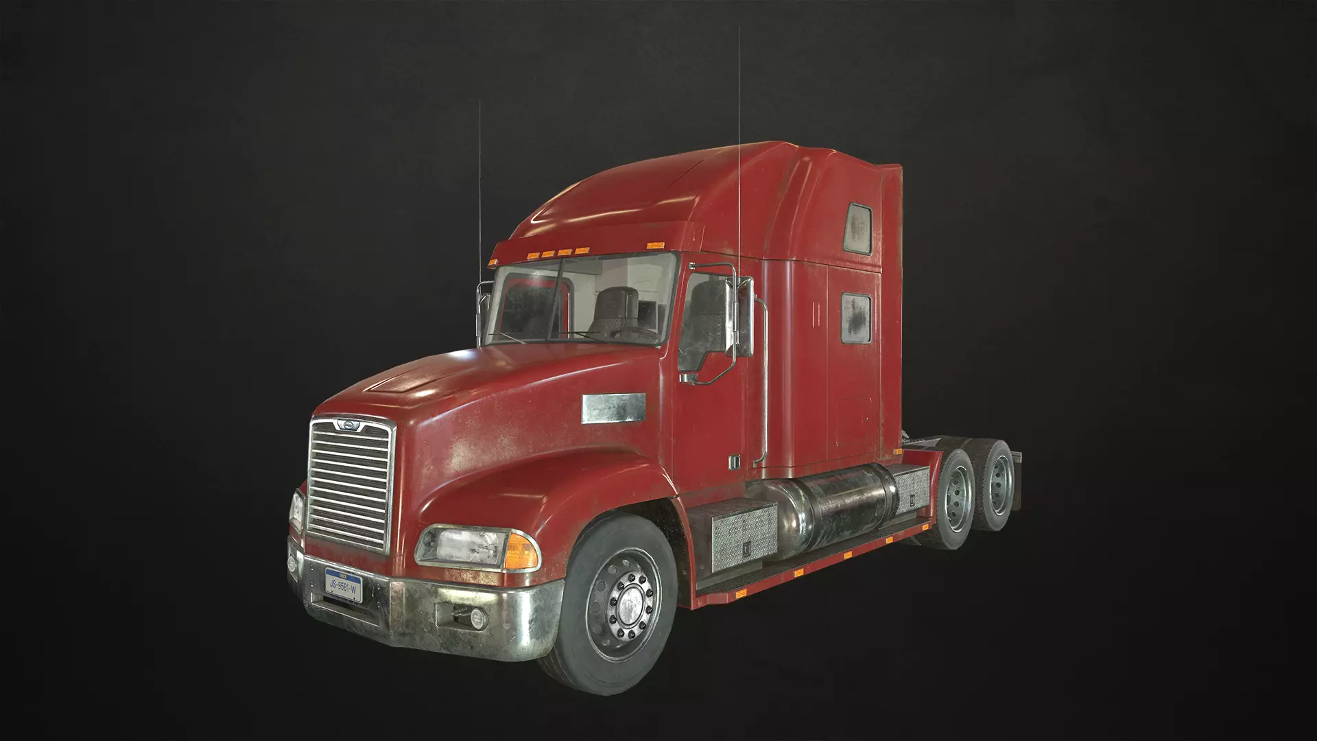 Low Poly 3D model of a Red Semi Truck Tractor with sleeper cab: