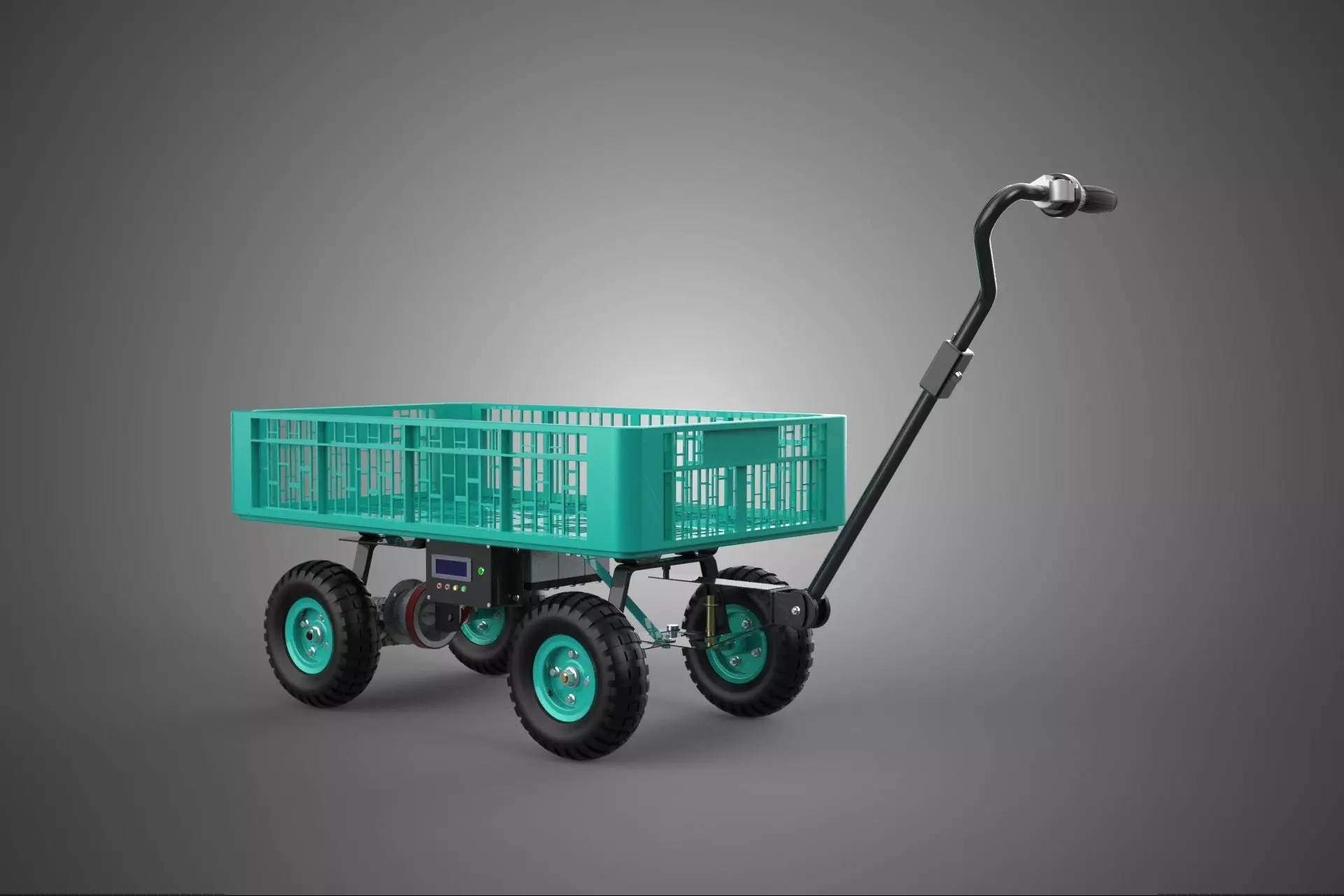 This 3D model represents a state-of-the-art smart battery-powered utility hand cart, meticulously designed for modern industrial and logistical environments. This motorized trolley serves as a pivotal tool in material handling, featuring a robust steel chassis and an integrated electric drive system that minimizes physical exertion for the operator. The propulsion is provided by high-performance brushless motors powered by a high-capacity lithium-ion battery pack, allowing for smooth acceleration and precise maneuverability even under heavy loads. The design incorporates a modular rack system optimized for the secure placement of industrial crates and trays, facilitating the organized transport of diverse components or retail goods. Its smart functionality is highlighted by an onboard control unit that manages power distribution, load balancing, and diagnostic monitoring through a digital interface. Safety features include an automatic electromagnetic braking system and non-slip ergonomic handles. The wheels are engineered with high-durability, non-marking polyurethane, ensuring compatibility with various indoor flooring types from polished concrete to tile. This versatile equipment is indispensable for high-efficiency workflows in distribution centers, hospital pharmacies, and manufacturing assembly lines, bridging the gap between manual labor and fully automated guided vehicles. The model captures intricate mechanical details, including the wiring harness, battery compartment, and structural fasteners, making it suitable for high-fidelity technical visualizations and industrial simulations.