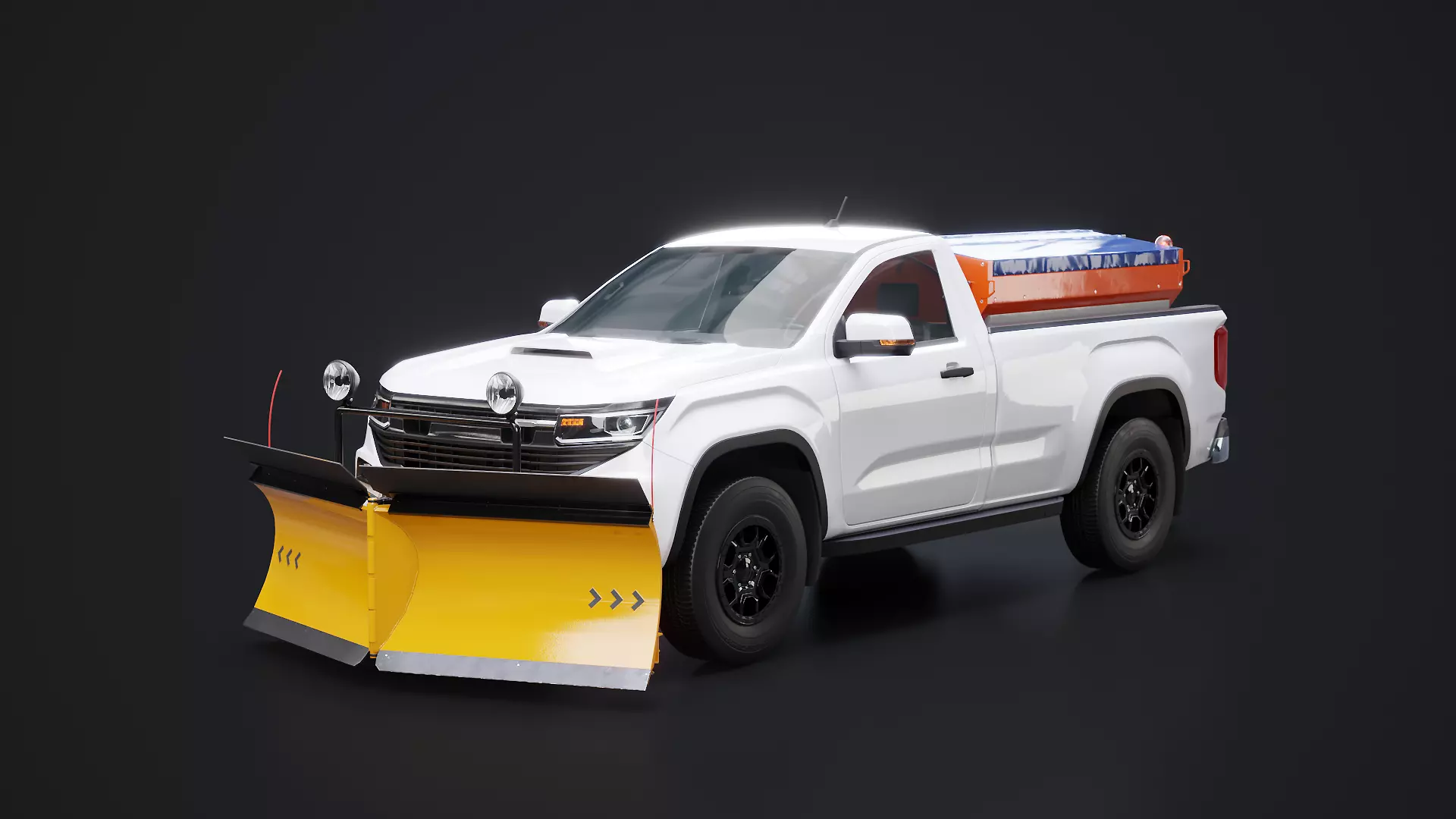 Snow Plow Pickup Truck Winter Utility Vehicle with Spreader 3D model