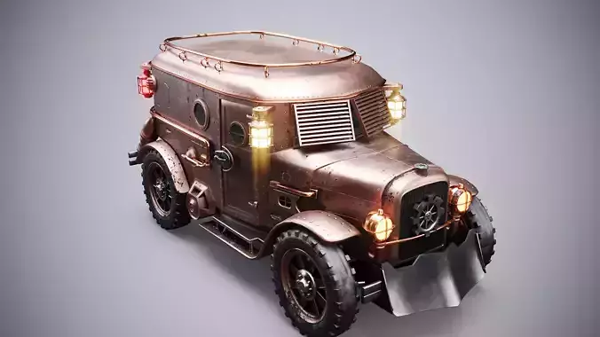 Steampunk Armored Van 3D Model LOD1 Low-poly 3D model