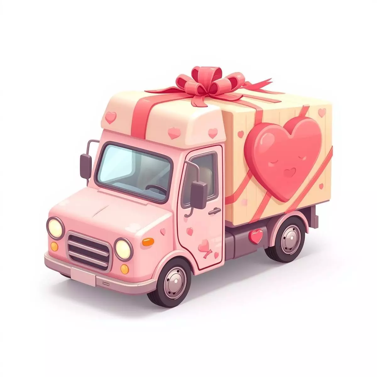 Tagsvalentine truck, delivery vehicle, 3d model, box truck, stylized 3d, game ready asset, heart motif, gift box truck, romantic design, cartoon vehicle, 3d prop, pastel colors, cute truck, mascot design, 3d toy, casual game, festive asset, love theme, social simulation, digital sculpture