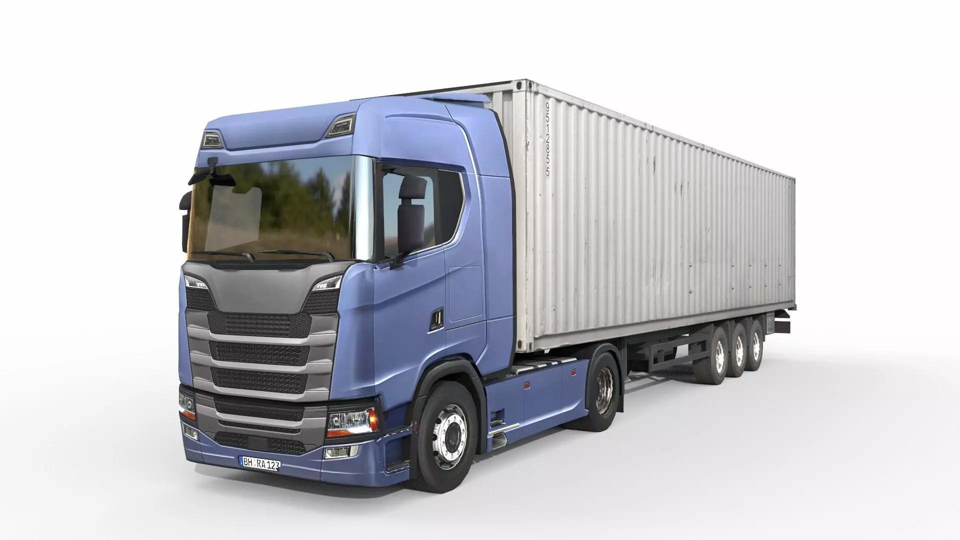 Realistic generic 3d model of truck and trailer