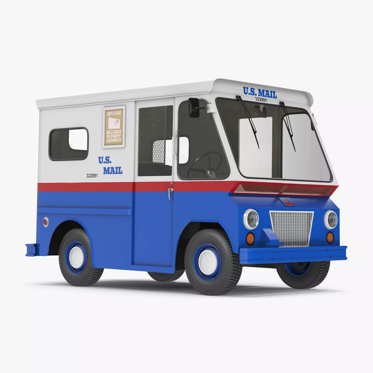 US Mail Truck Studebaker ZIP Van is a 3D model of retro postal service vehicle which is the retro mail truck which was used by the U.S. Post office. The old style, well known compact commercial vehicle produced by Studebaker. Ancient style post vehicle (special mail truck or postal vehicle), which is the well known vehicle used for the delivery of mail, letter items and parcels.For postal industry, delivery systems, history of post delivering automotive technologies, postal technologies, postage car equipment, post service vehicles, retro automotive transport, van type transport items, postal equipment history, transport technologies history, and postal service vehicles promotional projects.