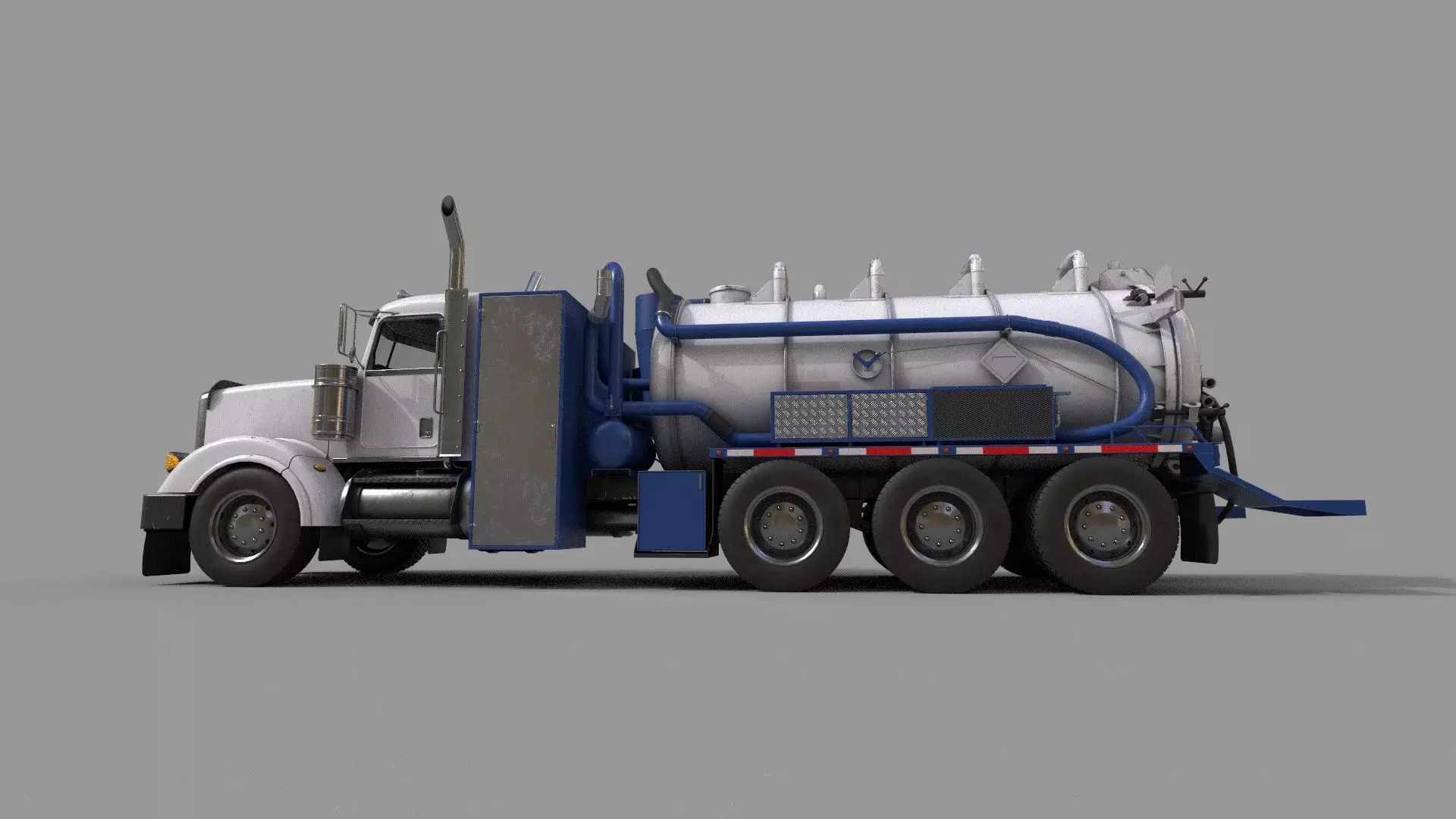 This vacuum tank is a Great add-on for the Modular Truck Chassis, ideal for adding realistic utility, service, and industrial functionality to your game or scenes.