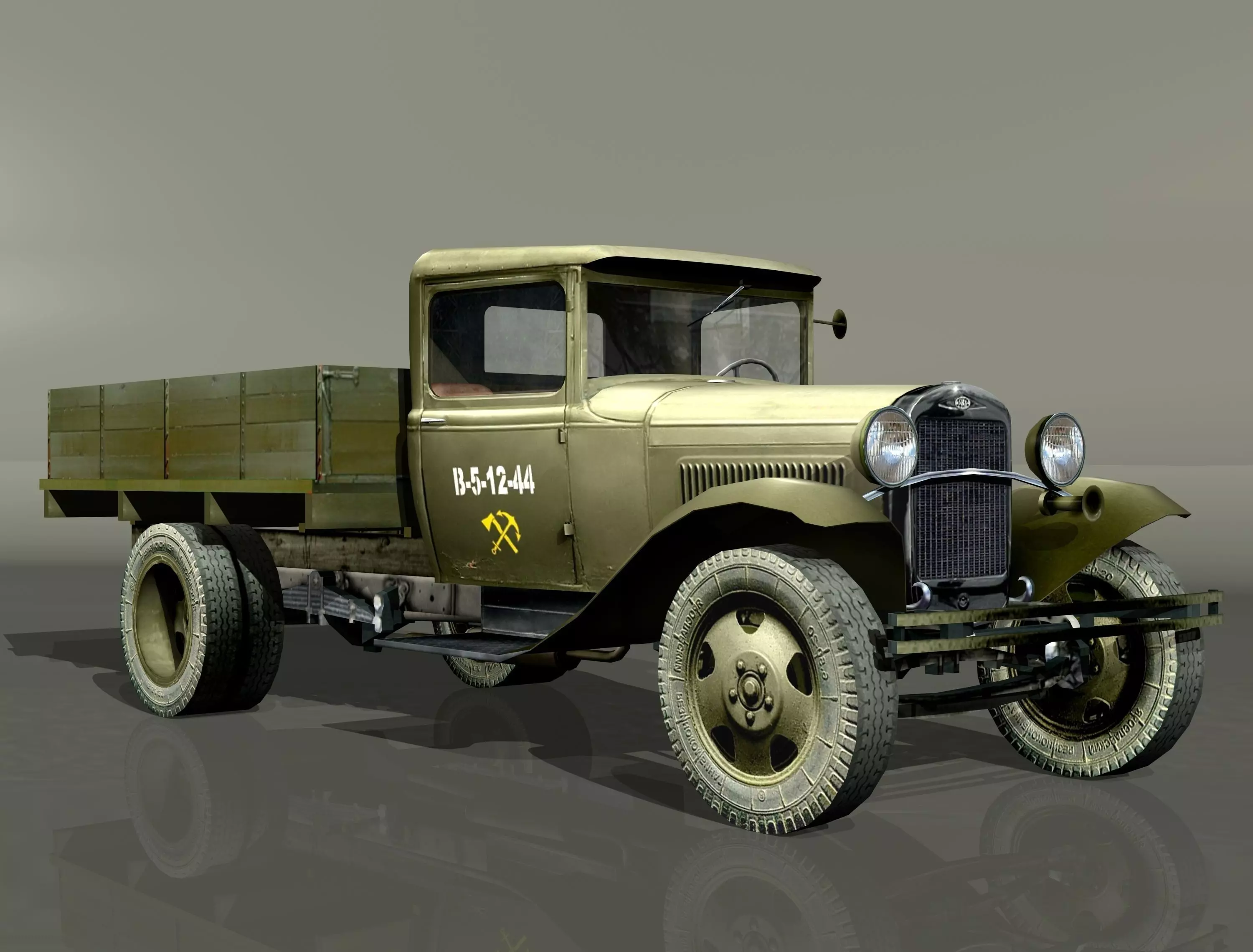 Vehicle GAZ-AA 'lorry'.Static low poly 3D model for installation in scenes, in scenarios, or as static model for simulators and games.Has the cabin interior.Updated version of the model, optimised mesh..3ds max model category - lowpoly (faces: 6271, vertexes: 3590).The archive contains the model file (3dsmax2009), texture (.JPG), the file extension in the format .uvwIt is also exporting models in the following formats: .FBX, .3DS, .OBJ.