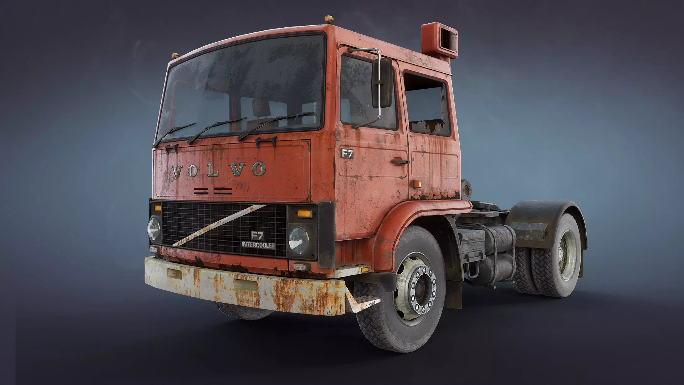 Game ready 3d-model of rusty retro semi-truck Volvo F717 Intercooler.
