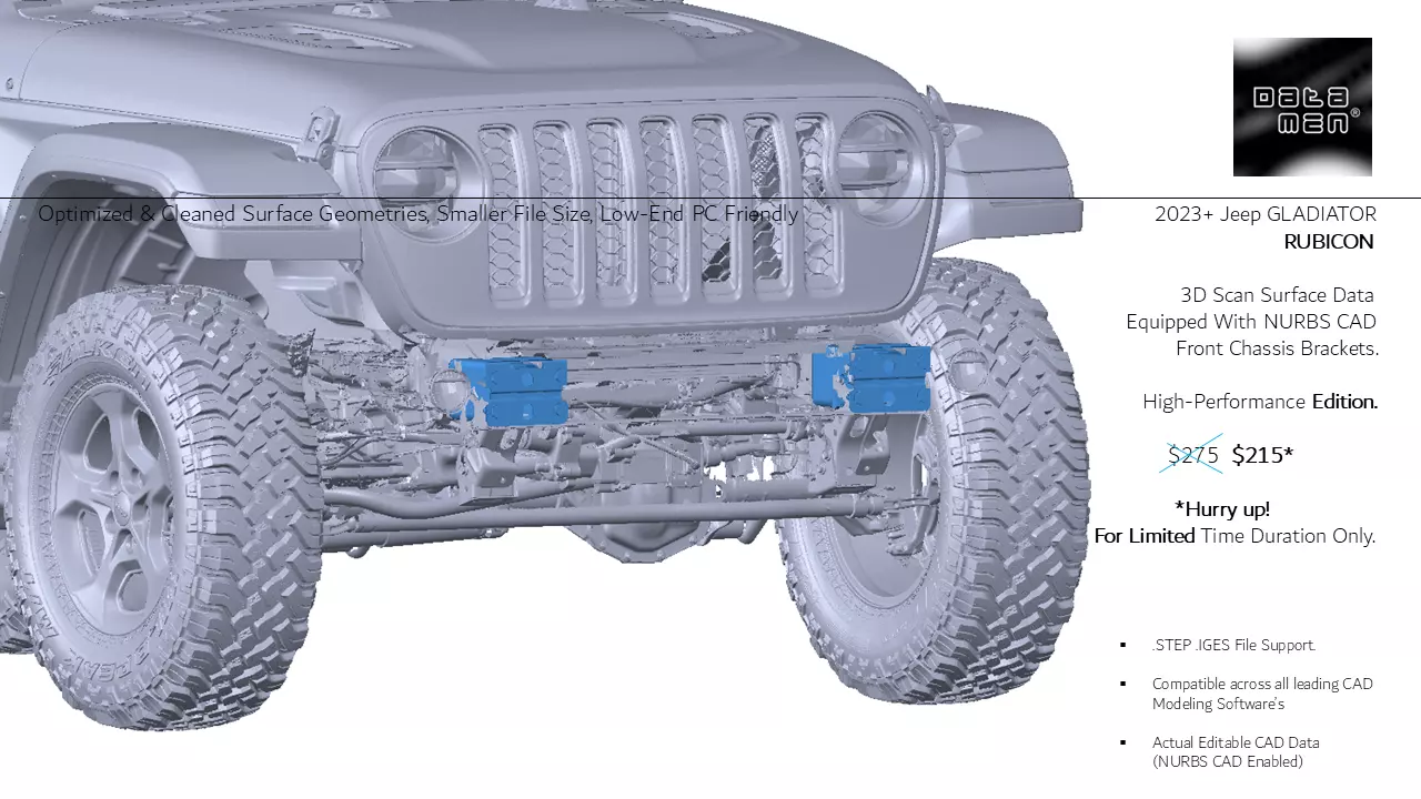 As an aftermarket equipment manufacturer, or a hobbyist, or an off-road enthusiast...We understand your need for quality, high performance & accurate 3D scan datas' (even on low-end PCs)