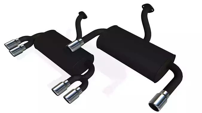 Car exhaust system - set of two high poly rear mufflers 3D model