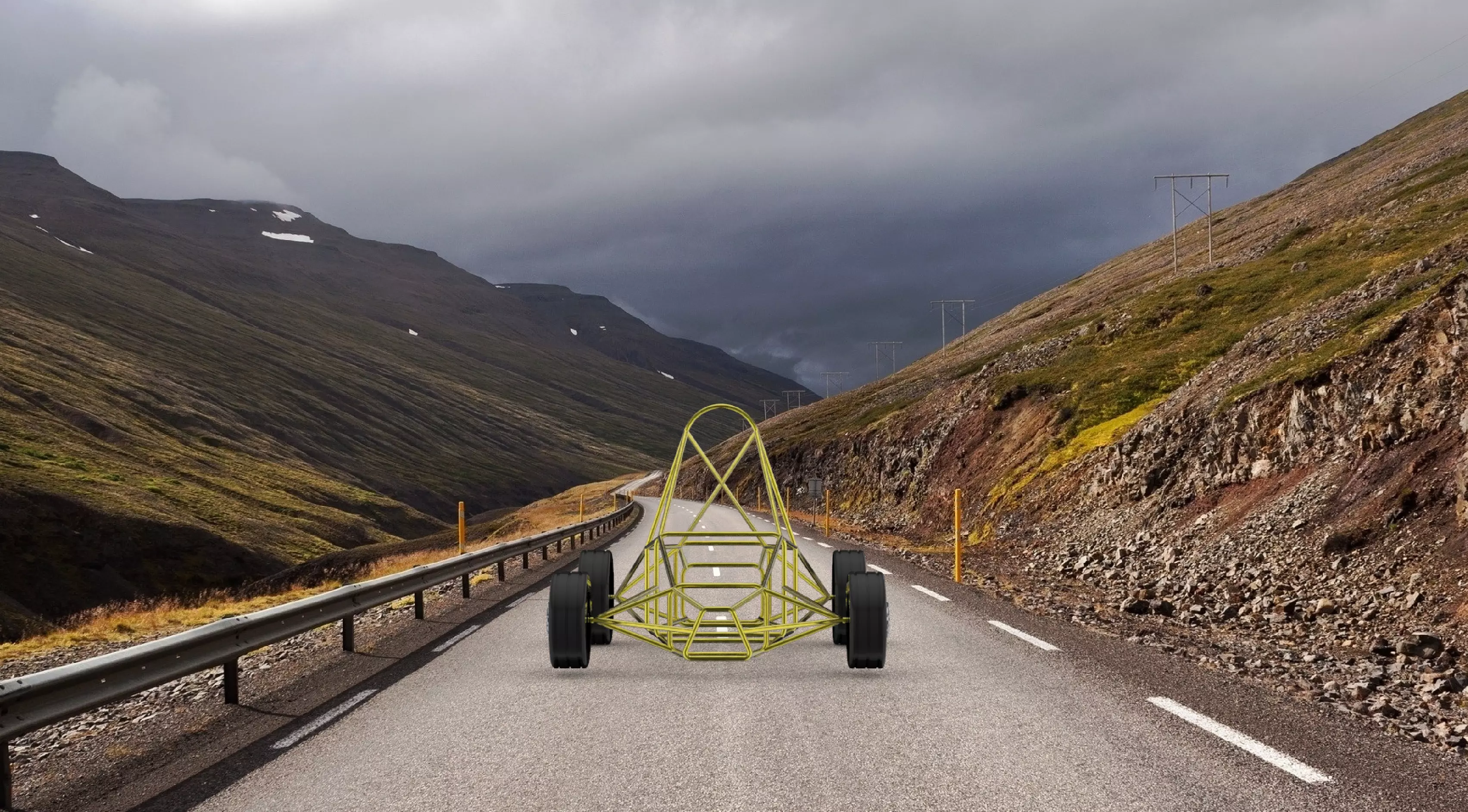 Car Frame with Wheels is a three-dimensional model of disassembled car construction which is a structural backbone of the car vehicle.