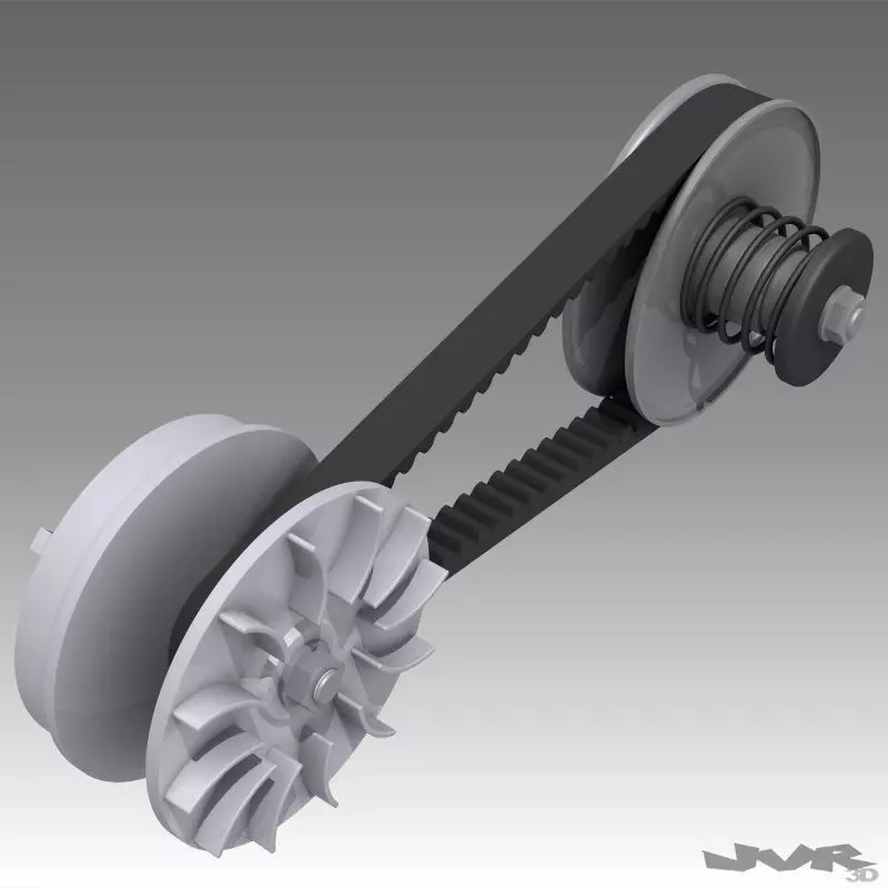 The model represents a small continuously variable transmision, used commonly in scooter, quad or snowmovil.