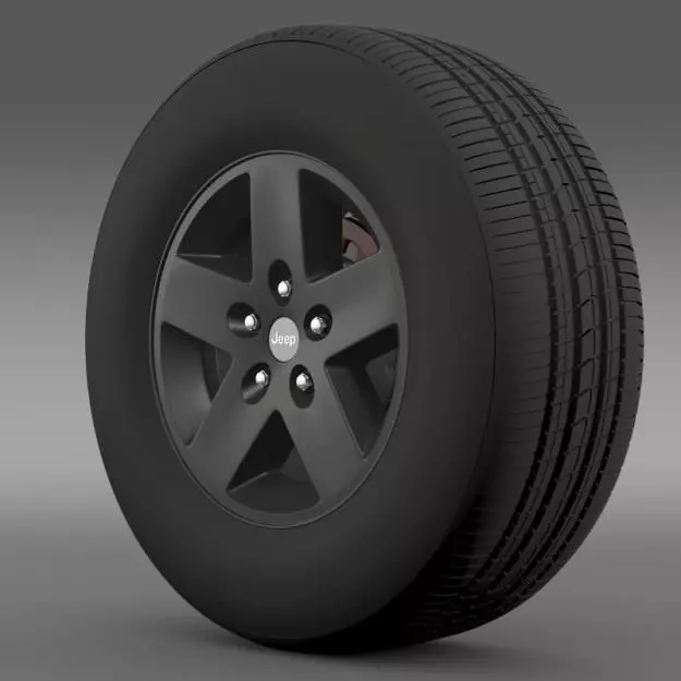 High detailed 3d model of the Jeep Wrangler Rubicon black wheel. Model is created in real units of measurement. Model with physically accurate materials.