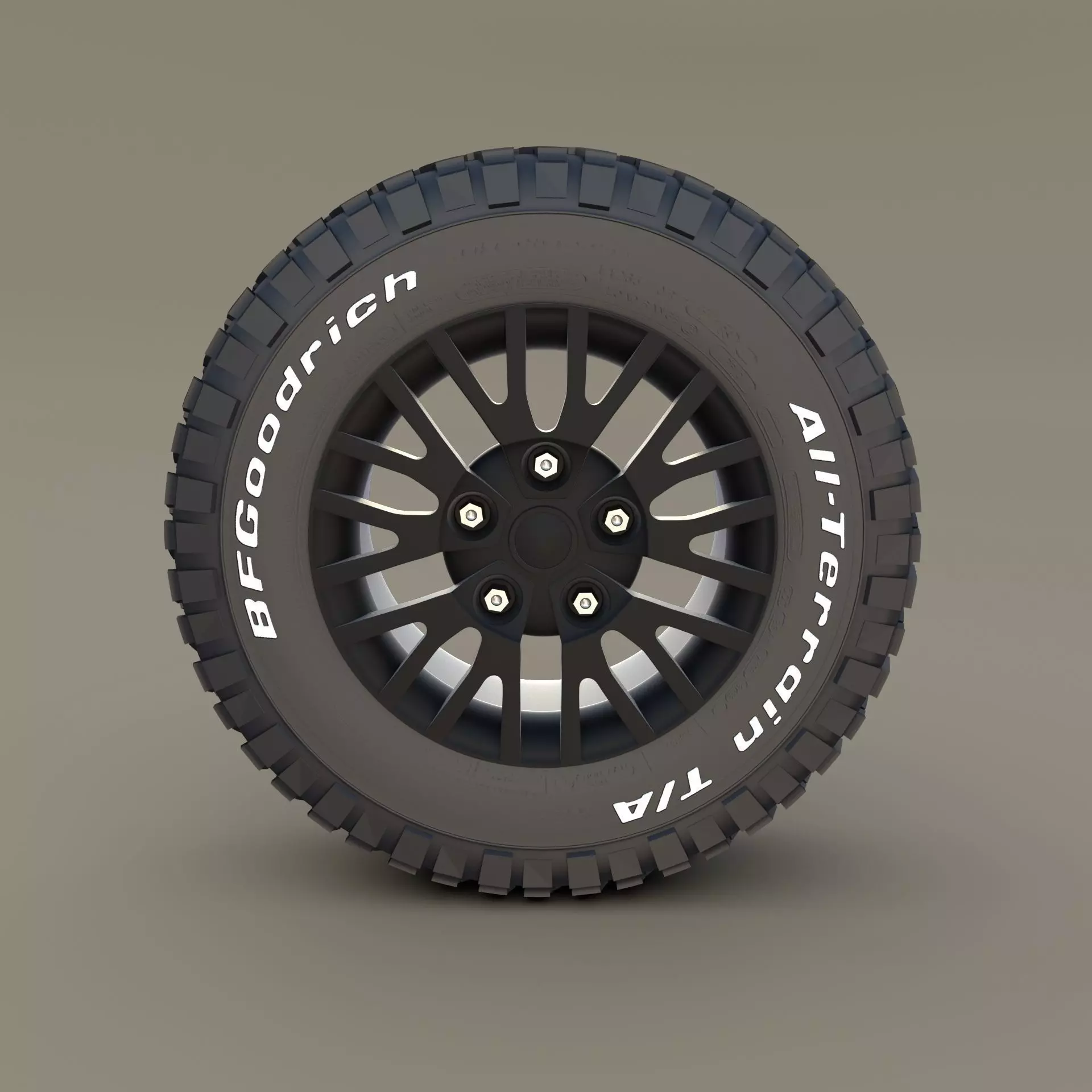 A very accurate model of an Khan Wheel, with a BF Goodrich Tire.