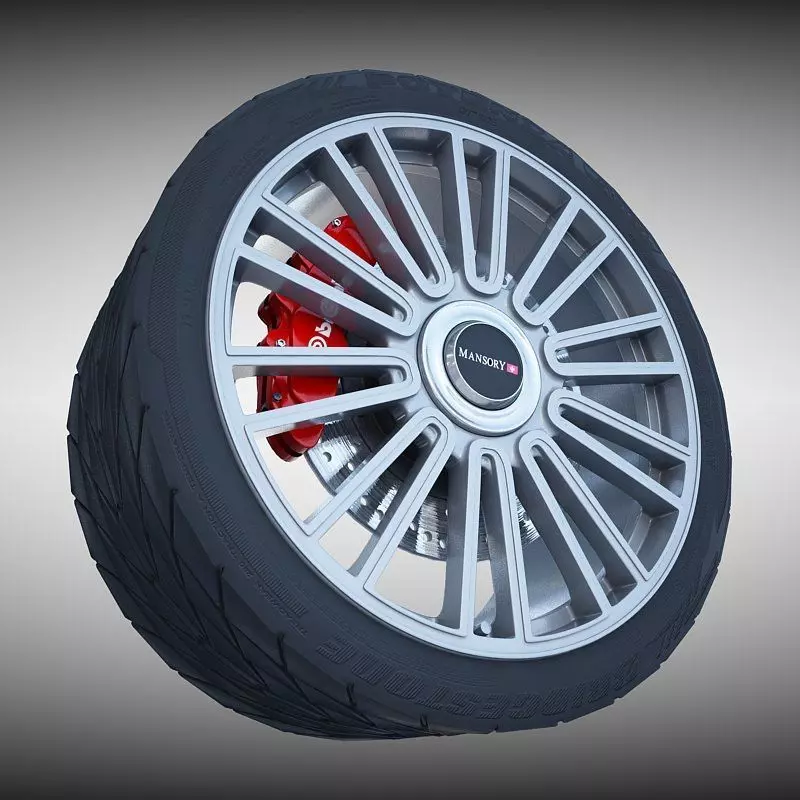 * 3D Model of a Mansory Wheel with Tire, Brake Disk and Caliper - With Textures and Materials - Ready To Render in Your Scene