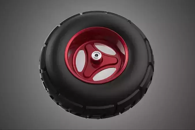 Pneumatic Utility Wheel Assembly (Metallic Red, Three-Spoke Configuration)