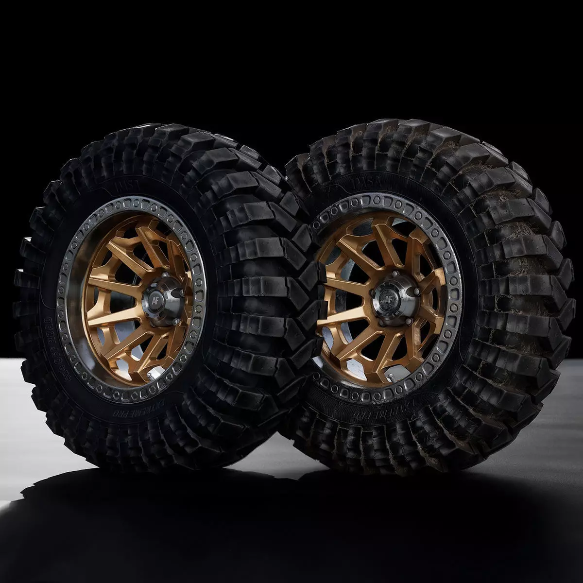 Realistic off-road tire and rim design inspired by modern 4x4 vehicles