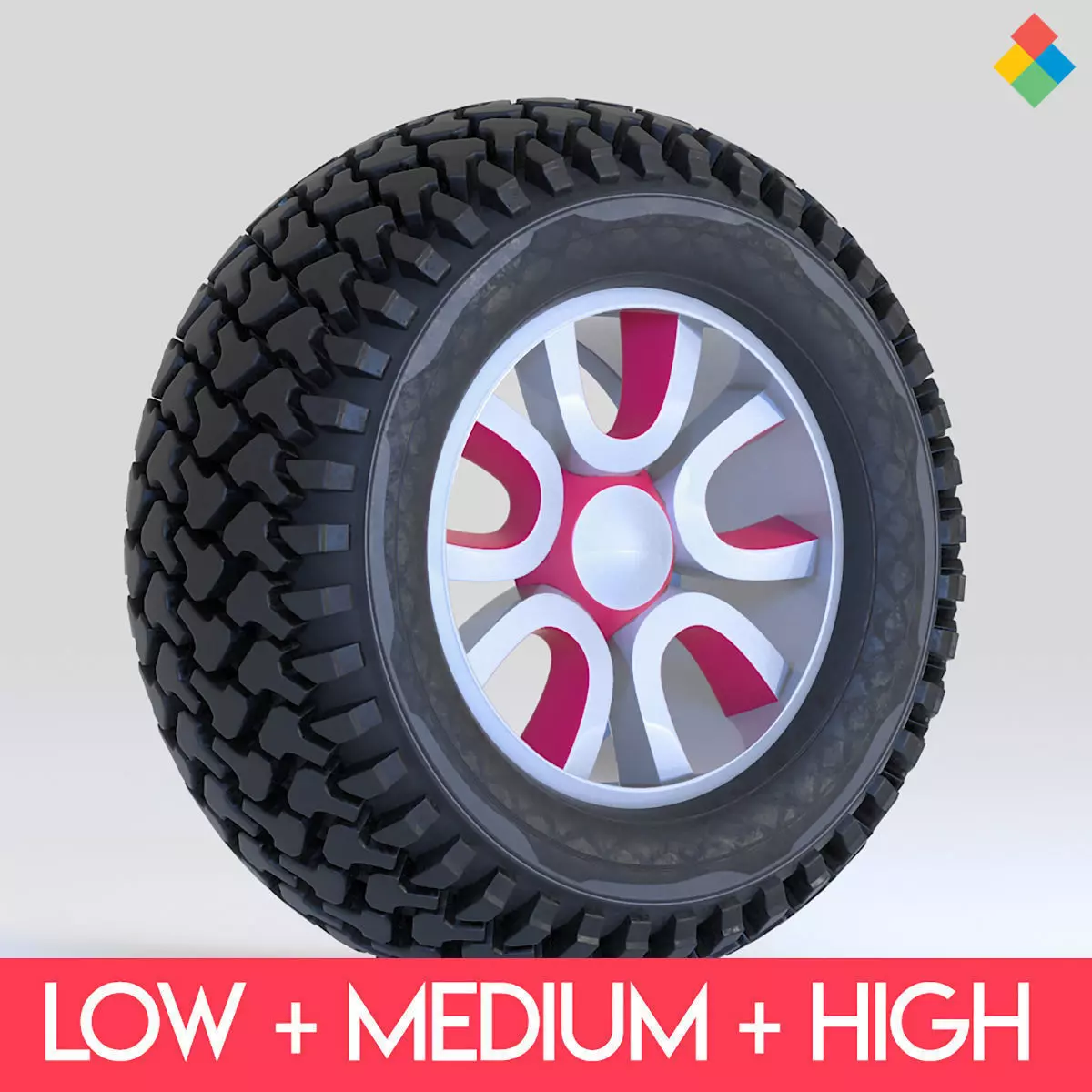 Offroad Tire Wheel Design Rim3 Low-poly 3D model