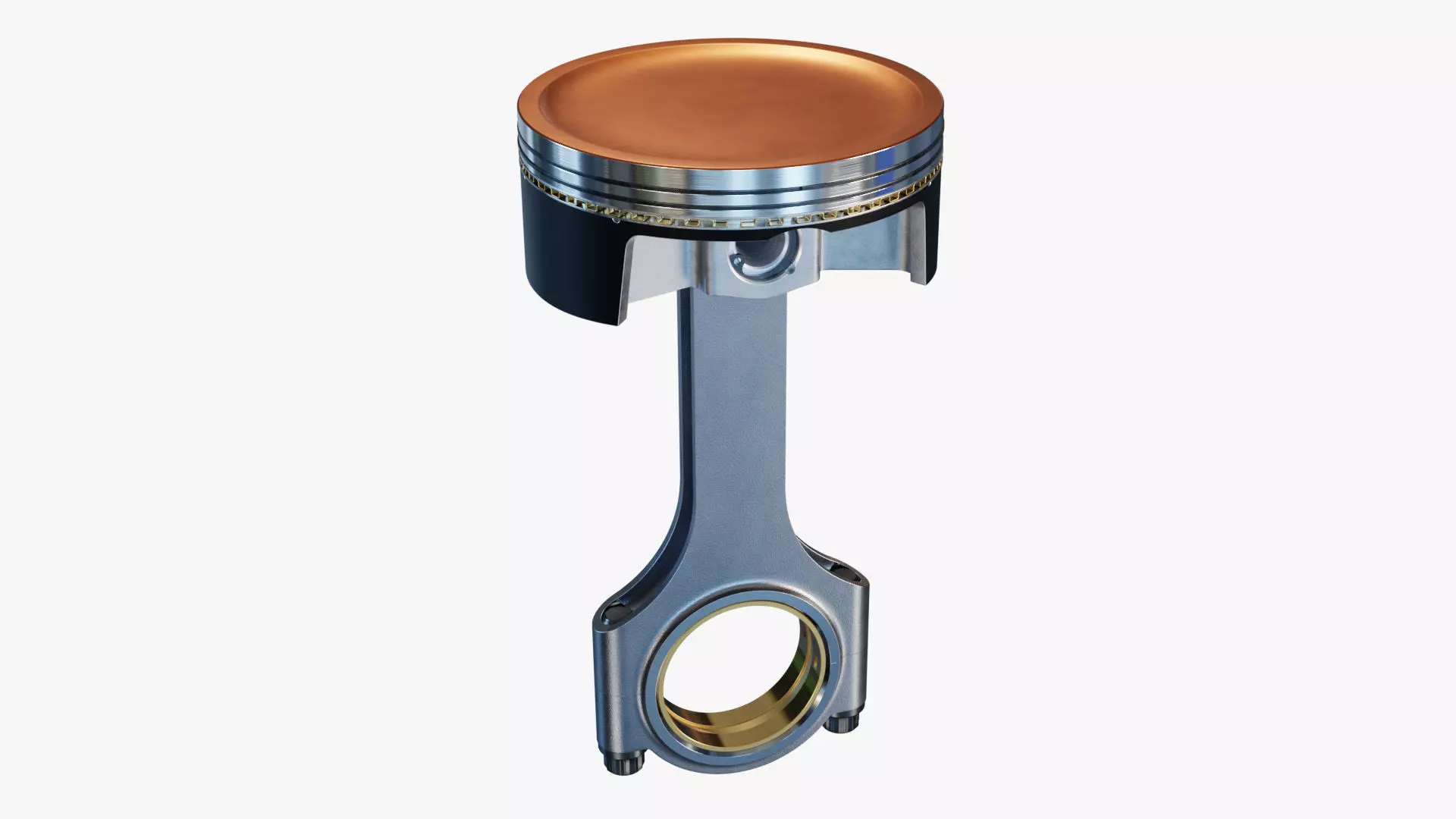 High quality ultra-detailed 3D model of a high-performance piston and connecting rod. All components are fully modeled, as in reality. Every component and detail of the real thing is faithfully reproduced, including the lubrication ducts. The head is coated with a ceramic thermal barrier to improve piston durability. The skirt is treated with a molybdenum-based anti-friction coating to reduce wear.