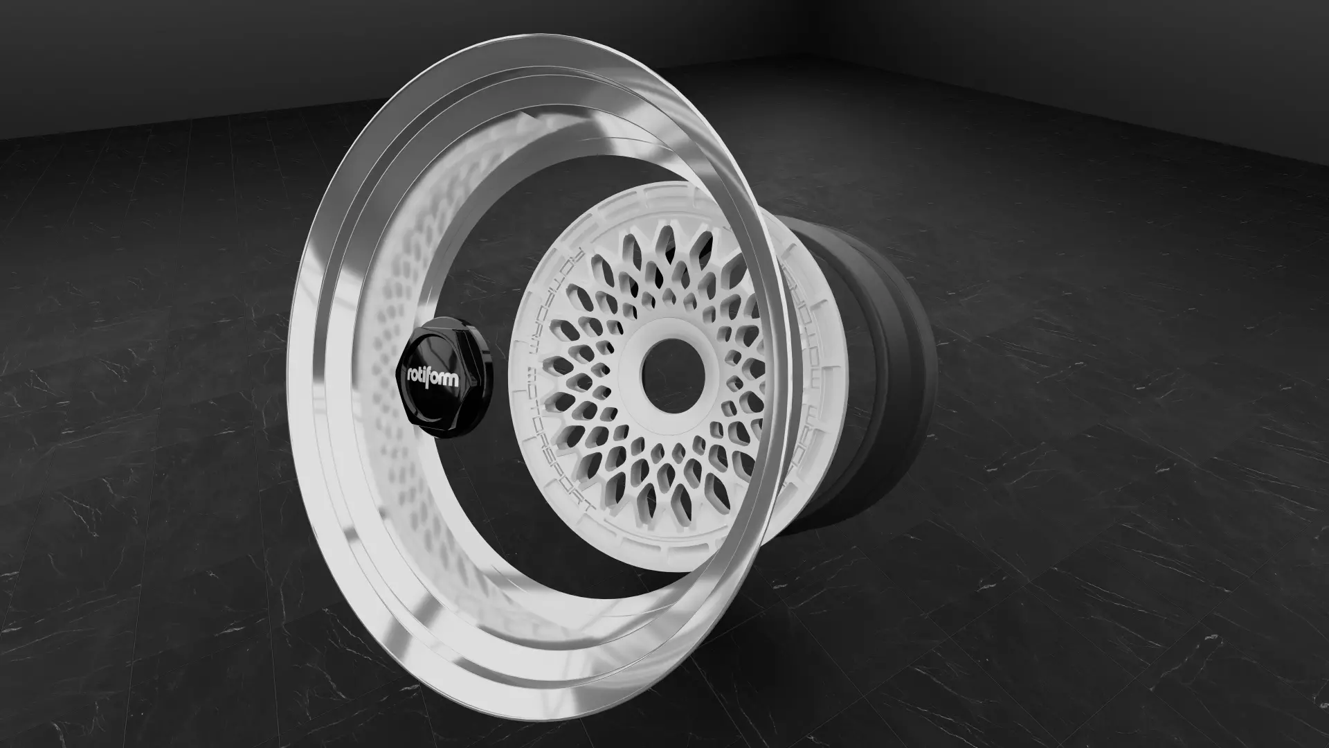 High-fidelity 3D model of the ROTIFORM LHR-M wheel, accurately representing the signature mesh design and stepped lip profile associated with the LHR style. The model is suitable for automotive visualization, product renders, animations, and game or simulation environments. Geometry emphasizes clean topology and realistic proportions based on visual reference.