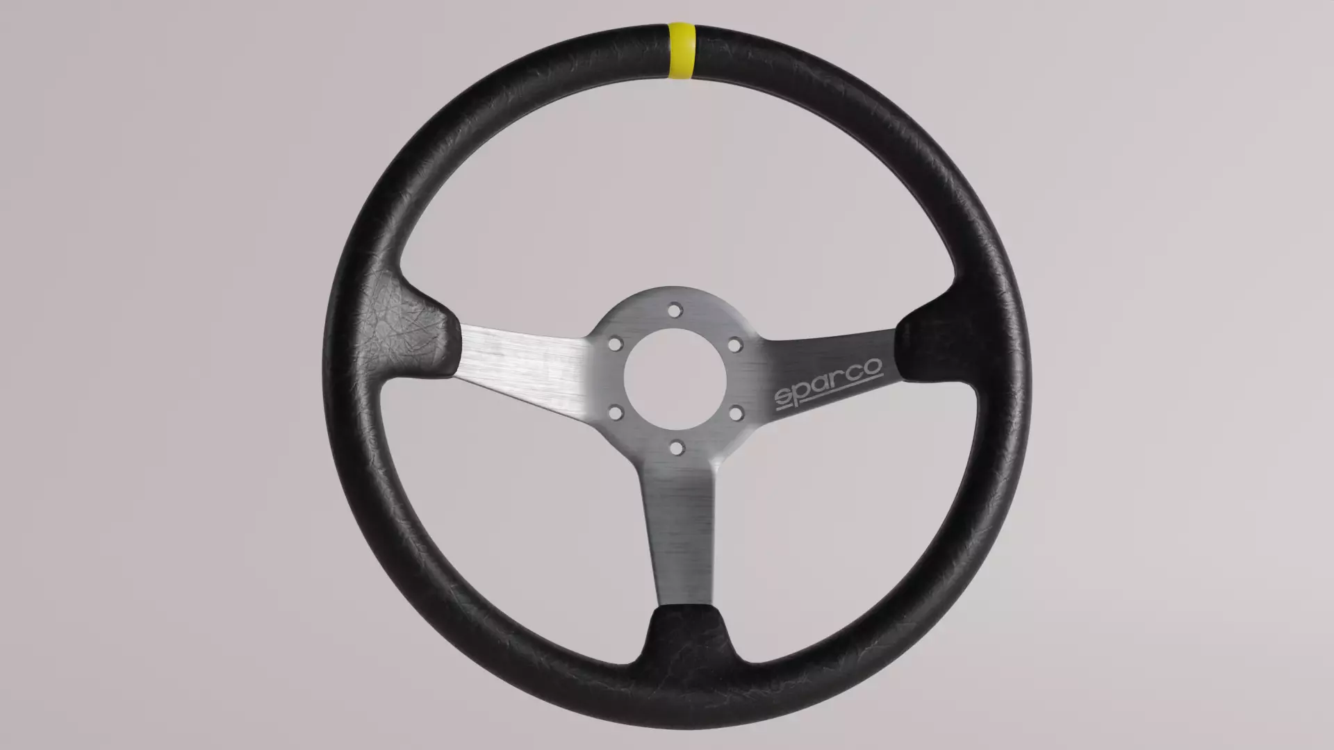 Replica of a Round Deep-dish Sparco leather wrapped wheel rim. Commonly Used and Found in Race Cars and Track Cars.