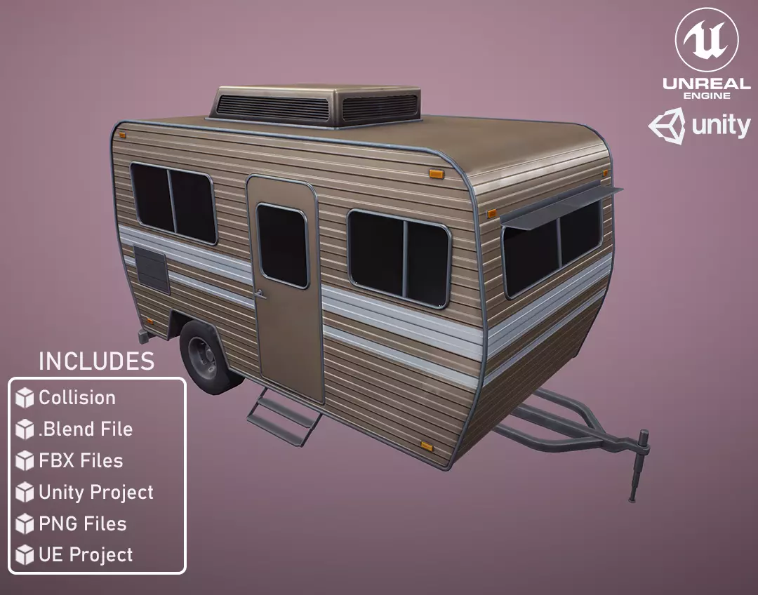 Stylized Camping Trailer with PBR Textures. Suitable for any scene. Ready to use in any project.