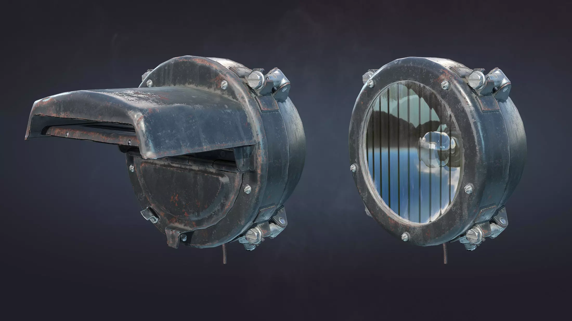 Game ready and high poly 3d-model of military / offroad vehicle headlight.