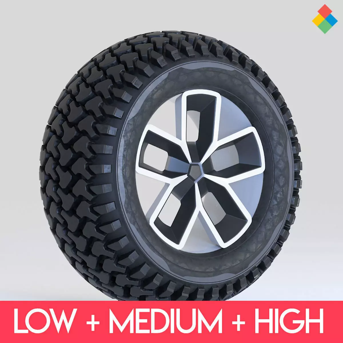 Offroad Tire Wheel Design Rim Low-poly 3D model