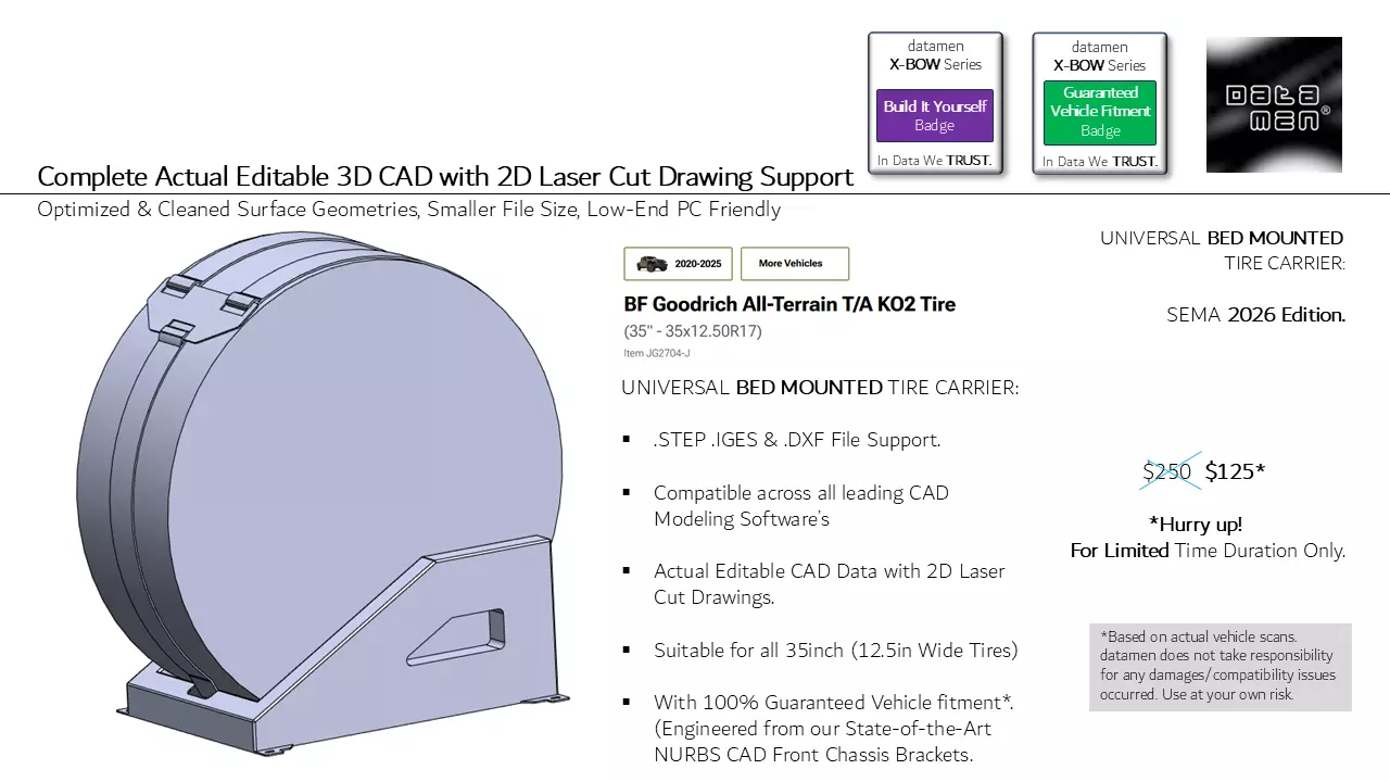 For Actual Badasses.The X-BOW Series Universal Bed Mounted Tire Carrier Compatible For: