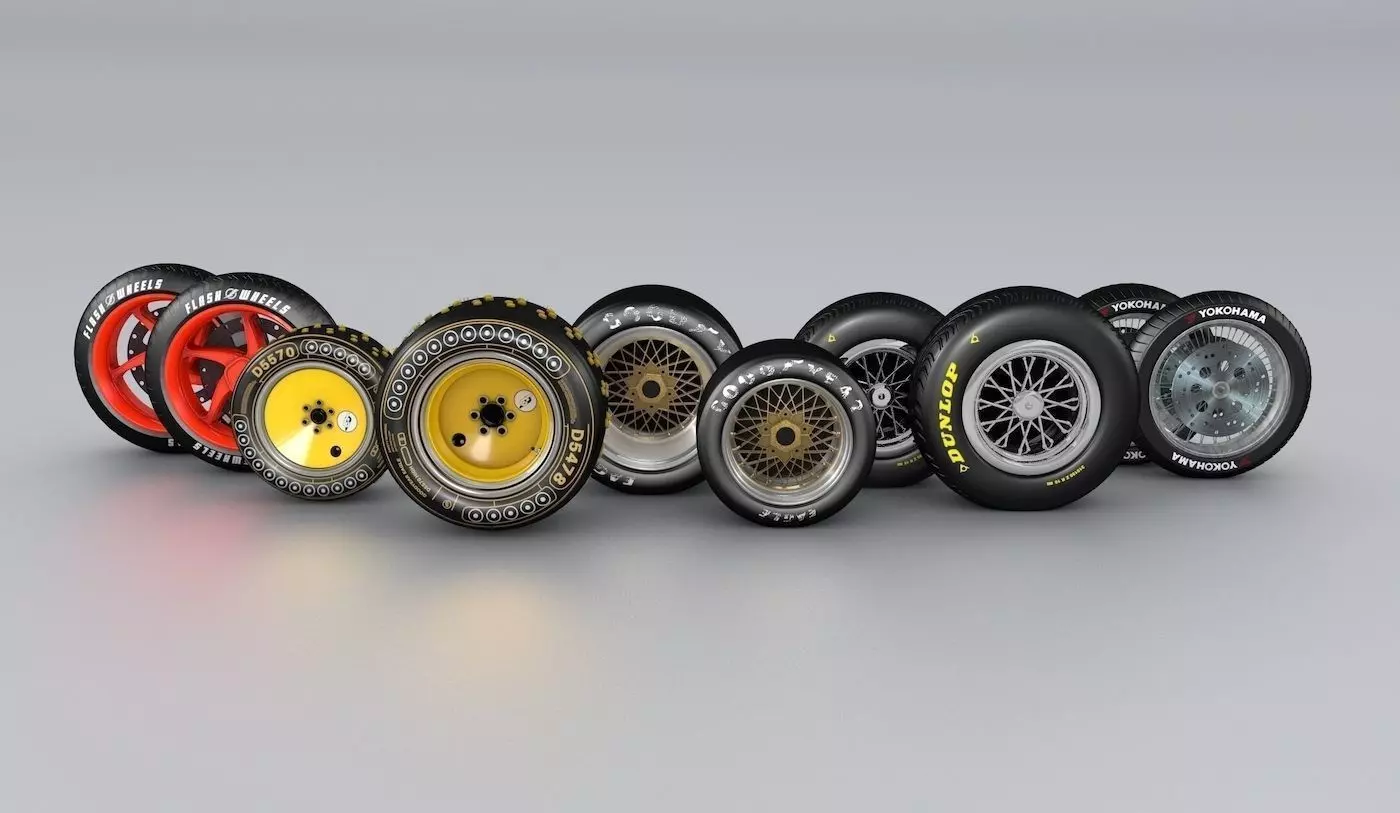 Wheels 3D models5x pair car and bike wheels.Modeled in cinema 4d included textures, lights and advanced render settings. The result can you see in the preview pictures, thx for watching .