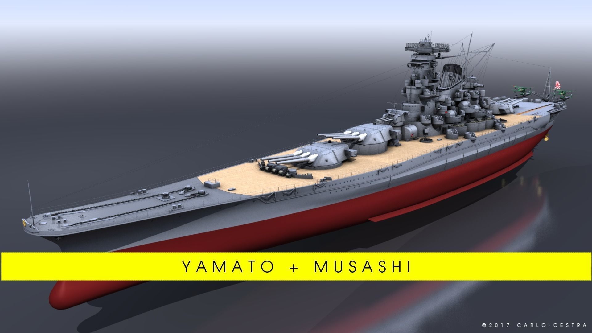 HISTORICAL SUMMARYYamato battleship was the lead ship of the Yamato class of Imperial Japanese Navy during the Second World War.Named after the ancient Japanese Yamato Province, on the Kii peninsula, she was the first of four designed ships and was the heaviest, largest and most powerful battleship ever built, displacing about 72000 tons at full load and armed with nine 46 cm Type 94 main guns. Yamato exceeded other country battleships not only by the displacement and the calibre of her guns, but also by the construction of her hull, armour protection, gunnery and optics. The superiority of her optic equipment gave her tremendous precision to her main gunfire. She was an incredible achievement for the Japanese naval engineering and ship-building industry by any international standard.Yamato was laid down in 1937 and commissioned a week after the Pearl Harbor attack, in late 1941. She served as the flagship of the Japanese Combined Fleet throughout 1942. In June 1942 Admiral Isoroku Yamamoto directed the fleet from Yamato during the Battle of Midway. But after the defeat and the loss of four aircraft-carriers he was forced to return to the Inland Sea.Yamato was designed to counter the numerically superior battleship fleet of the United States of America, but she never in fact fought against them. The only time she fired her main guns against enemy surface targets was in October 1944 during the Battle of Leyte Gulf, but it turned out to be just the US escort carriers and destroyers.During 1944, the balance between naval powers in the Pacific turned against Japan. Soon its fleet was depleted by fuel lack. To slow down the Allied advance, in April 1945, Yamato was dispatched on a “kamikaze” mission to Okinawa. The orders were to fight to the death in a desperate attempt to protect Japan. On 7 April 1945 she was sunk by American carrier-based bombers and torpedo bombers. Most of her crew died.