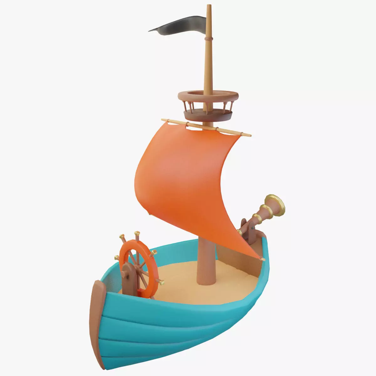 A cartoon stylized sailship. Ready for import to game engines using image textures and also set up with procedural materials for Blender rendering. Contains metallic, diffuse and roughness 4k textures (png).